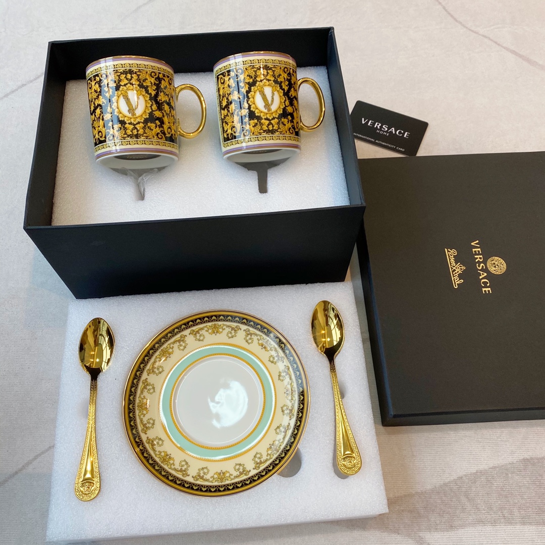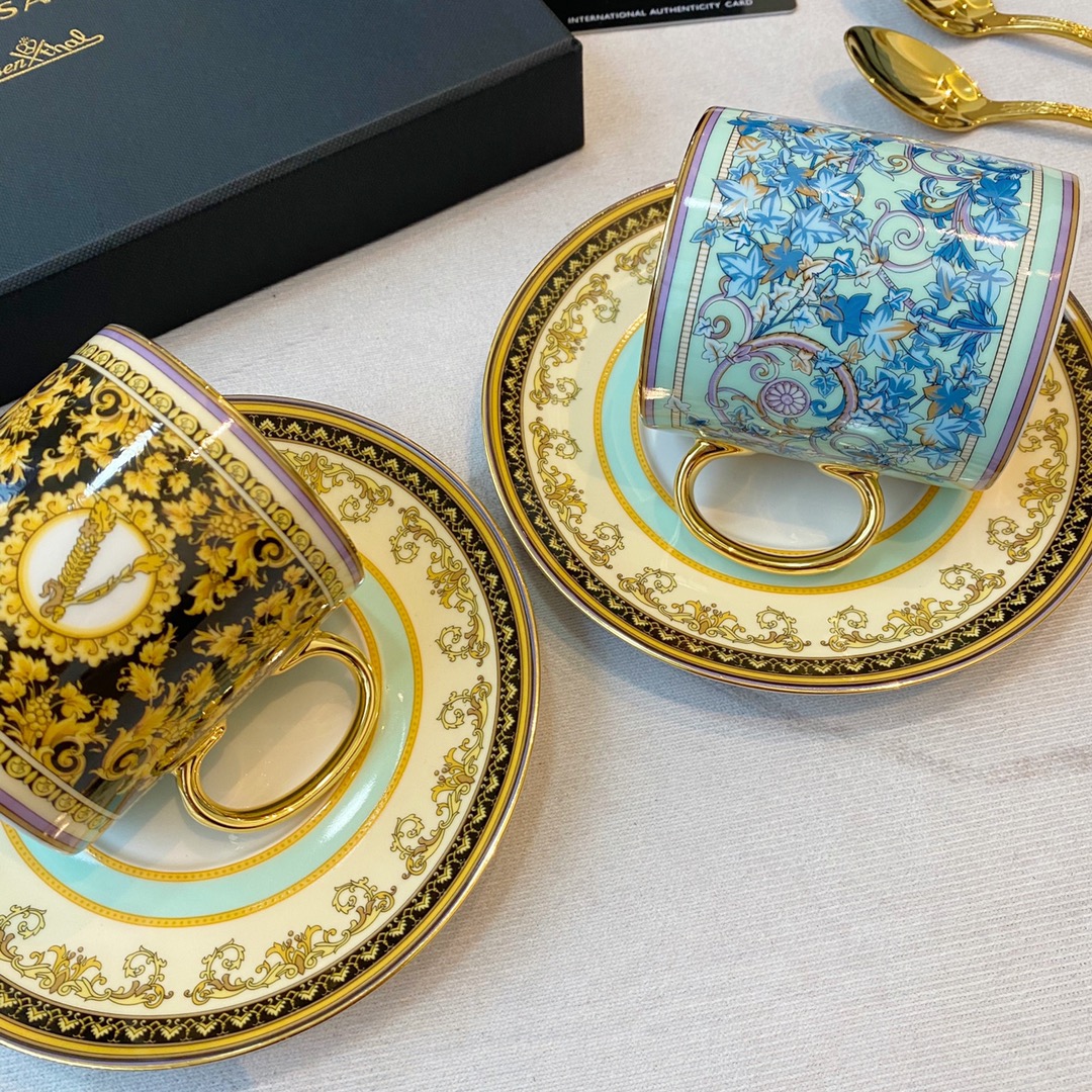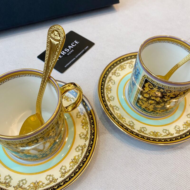 Versace spring and summer new products Baroque Kaleidoscope seriesCoffee Double Cup & Saucer Set -Rosenthal Meets Versace launches a very attractive new tableware-Barocco Mosaic Baroque Kaleidoscope series, inspired by Versace2021 early spring series Flash, with vivid colors and unexpected prints, inspiring a unique modern spark. -The pattern of the Barocco Mosaic Baroque Kaleidoscope series is renewed in the form of mosaic. The four classic prints are deconstructed and reorganized, and the design is combined with modern elements and vinyl records. Diversified and unique personality shapes are fun to play. novelty. Bold use of bright colors, such as elegant purple, soft mint green, create a fresh and charming look, and then match with Versace’s classic gold tones, gorgeously show the rich and beautiful urban style, awaken happiness and vitality.