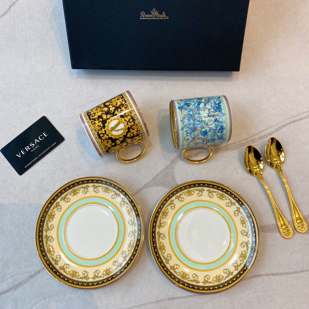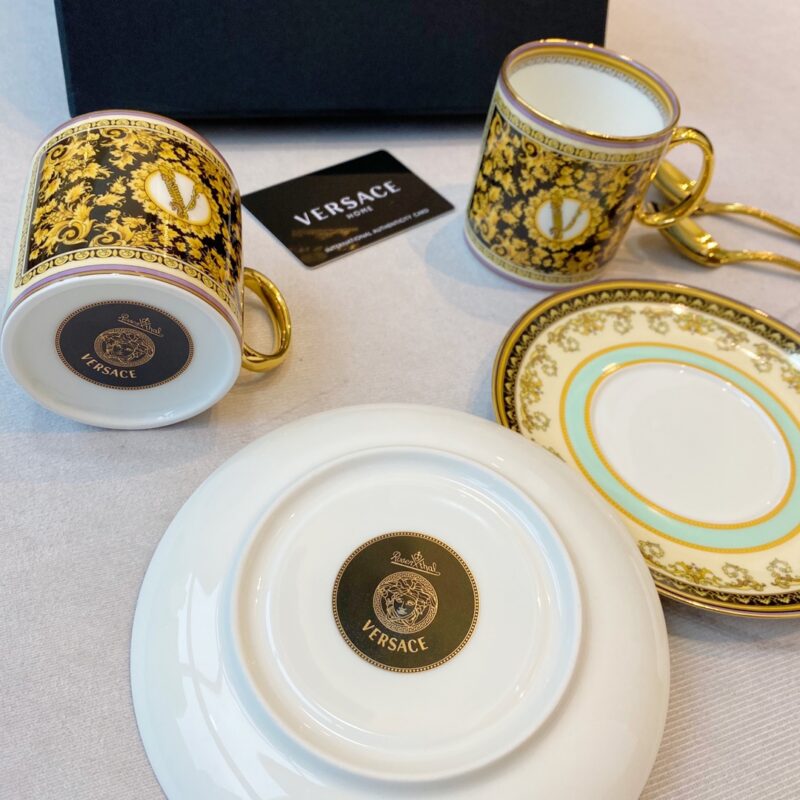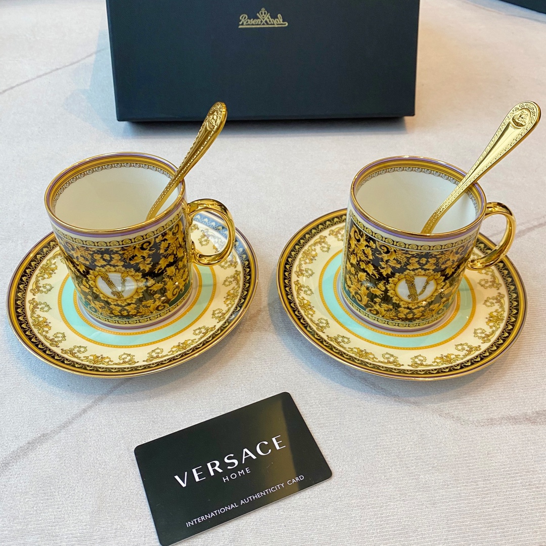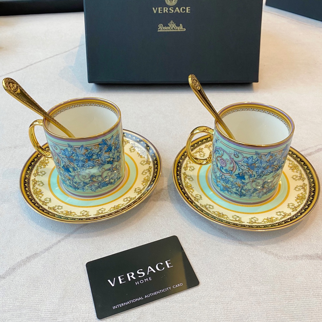 Versace spring and summer new products Baroque Kaleidoscope seriesCoffee Double Cup & Saucer Set -Rosenthal Meets Versace launches a very attractive new tableware-Barocco Mosaic Baroque Kaleidoscope series, inspired by Versace2021 early spring series Flash, with vivid colors and unexpected prints, inspiring a unique modern spark. -The pattern of the Barocco Mosaic Baroque Kaleidoscope series is renewed in the form of mosaic. The four classic prints are deconstructed and reorganized, and the design is combined with modern elements and vinyl records. Diversified and unique personality shapes are fun to play. novelty. Bold use of bright colors, such as elegant purple, soft mint green, create a fresh and charming look, and then match with Versace’s classic gold tones, gorgeously show the rich and beautiful urban style, awaken happiness and vitality.