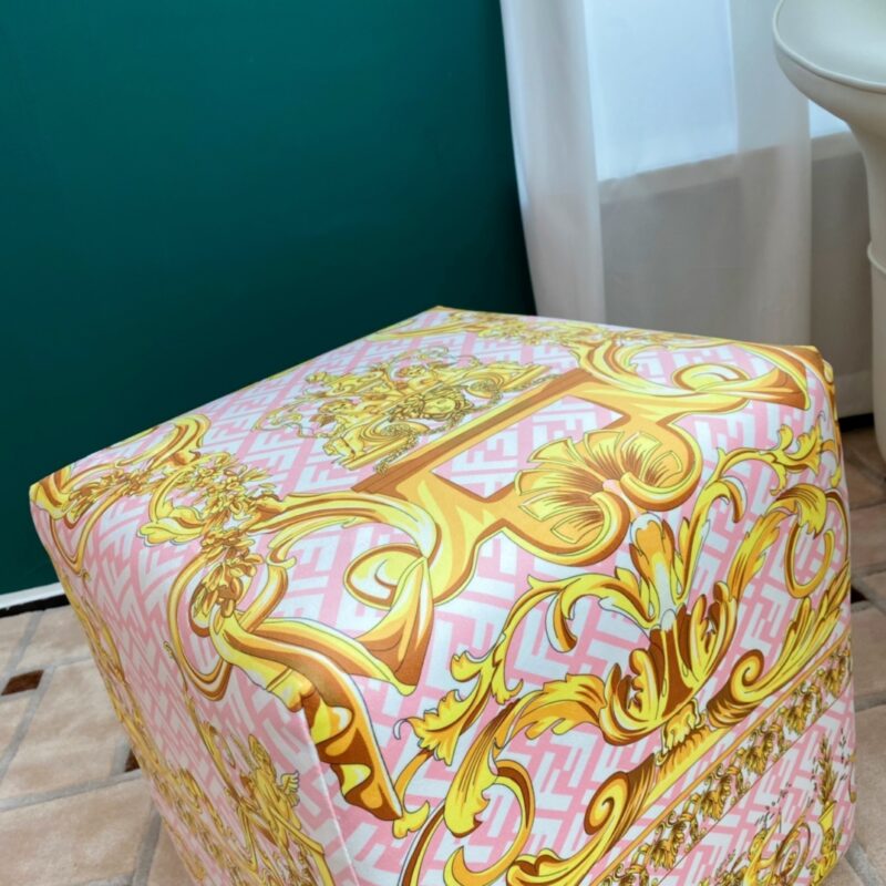 𝐕𝐞𝐫𝐬𝐚𝐜𝐞 & 𝐅𝐞𝐧𝐝𝐢 co-branded European-style leisure pouffe/dressing pouffe Velvet cloth digital printing. All metal base, more luxurious and high-end Size: 40×40×43cm