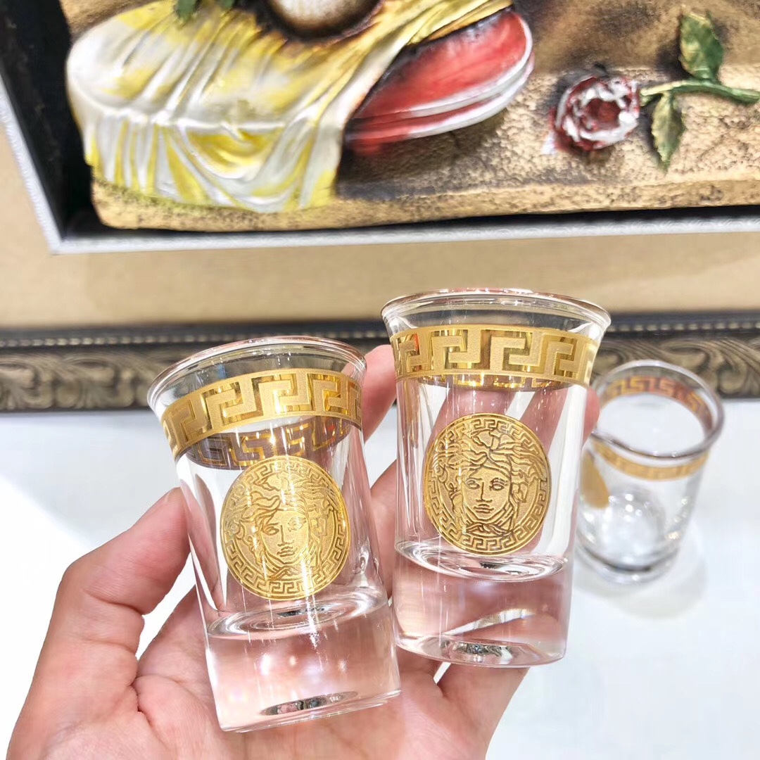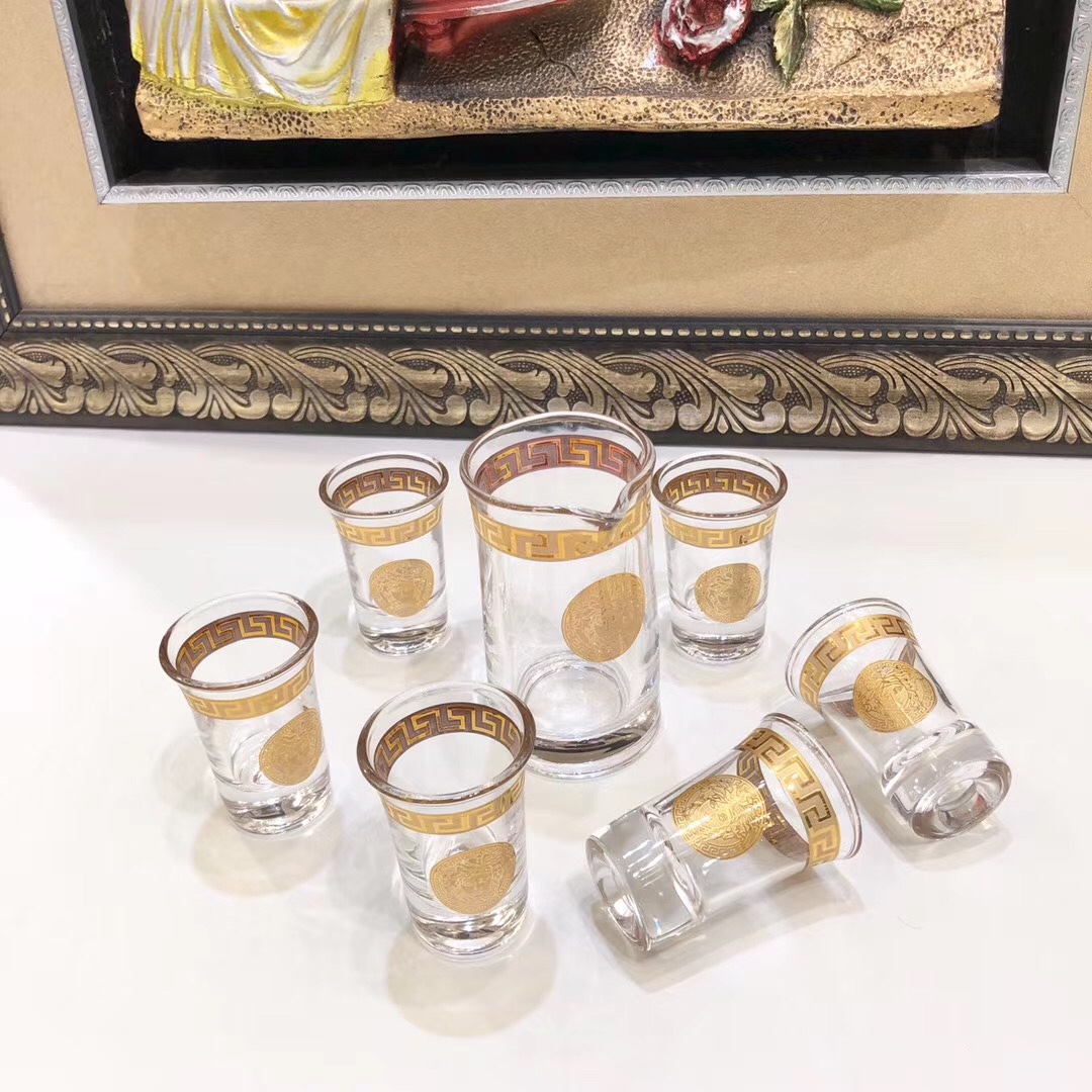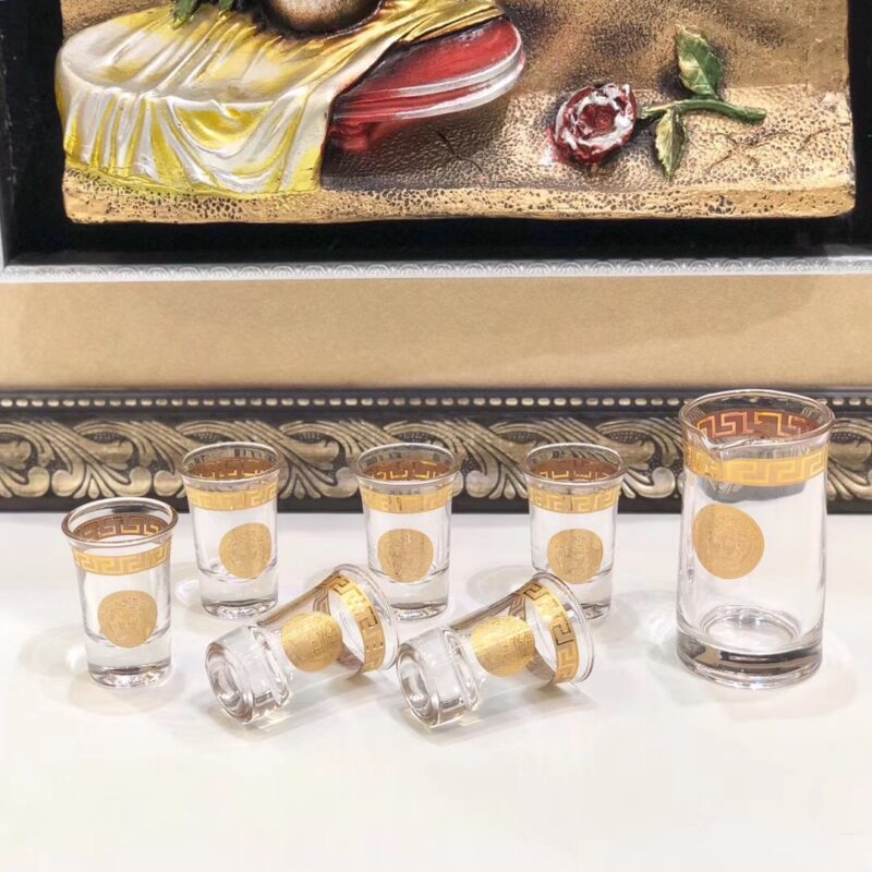 Versace imported Czech crystal water set Imported Czech crystal + 24K laser hand drawn gold. Water bottle size: 16cmx6.5cm 280ml Water glass size: 6.5cmx4.3cm 35ml