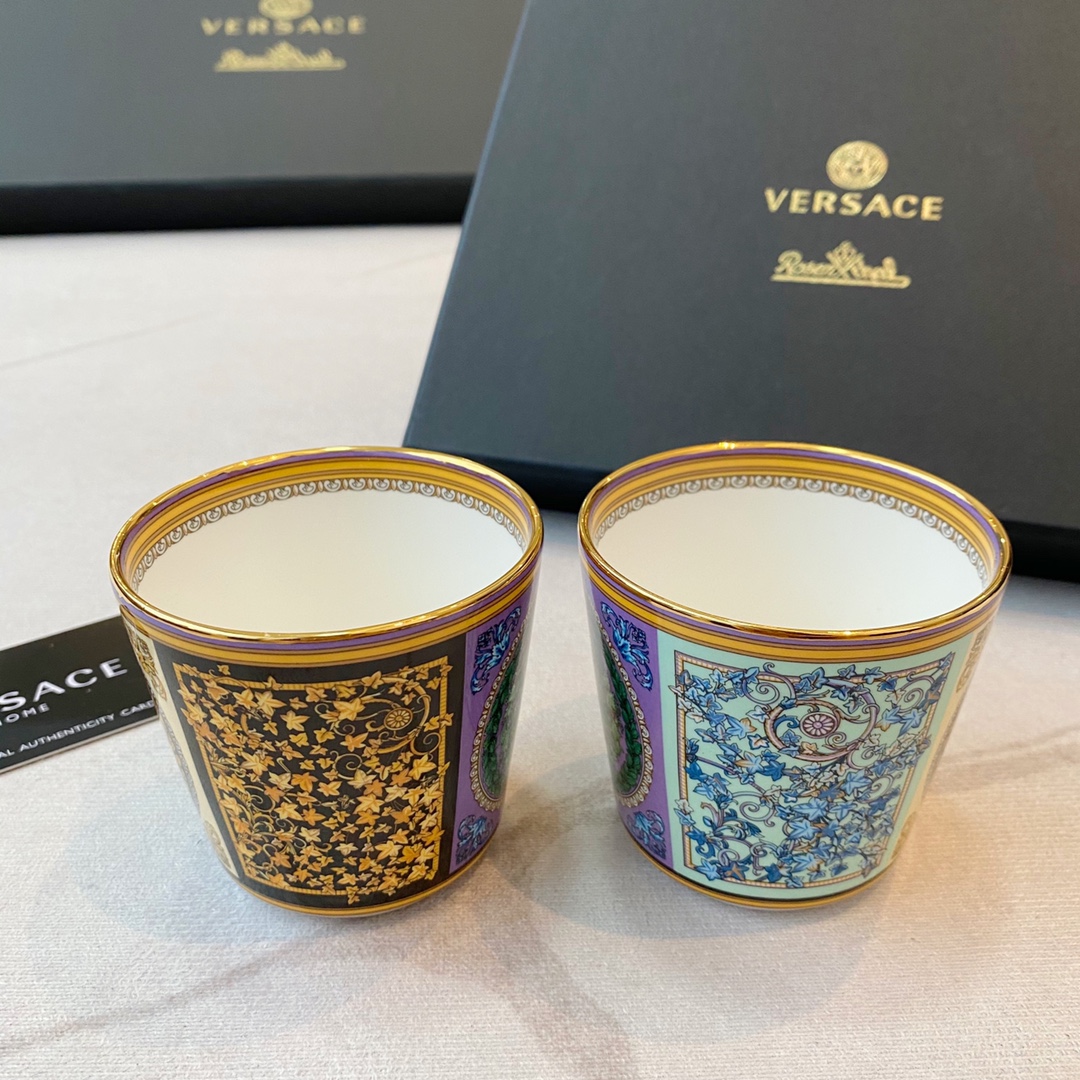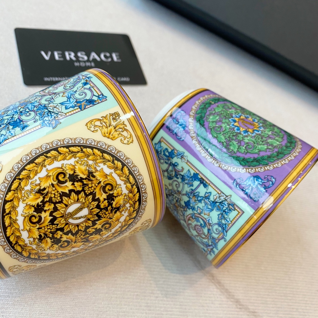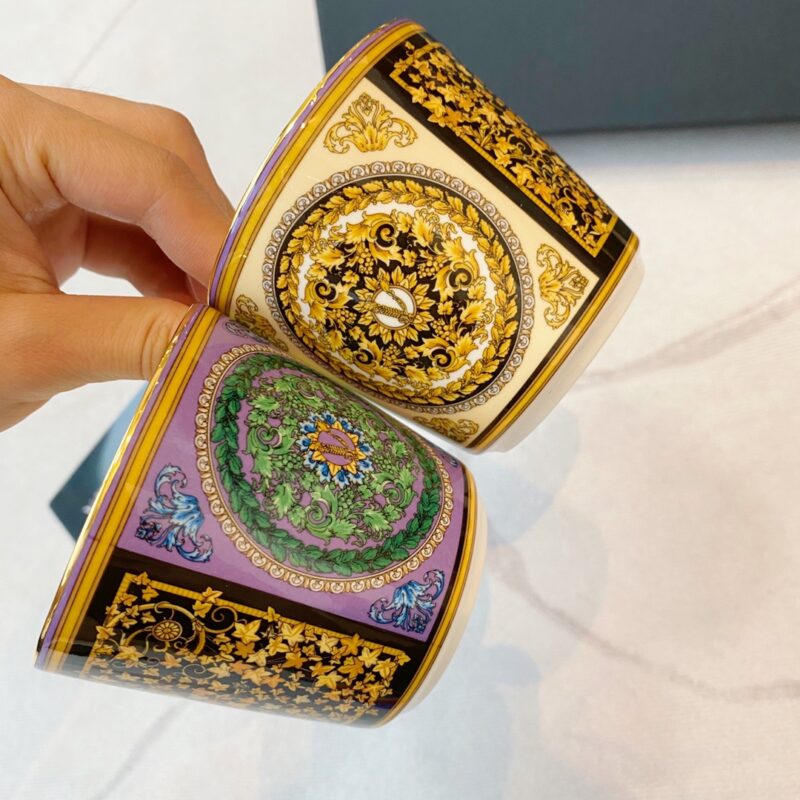 Versace spring and summer new products Baroque Kaleidoscope series Cup / pair of cups set -Rosenthal Meets Versace launches a very attractive new tableware-Barocco Mosaic Baroque Kaleidoscope series, inspired by Versace2021 early spring series Flash, with vivid colors and unexpected prints, inspiring a unique modern spark. -The pattern of the Barocco Mosaic Baroque Kaleidoscope series is renewed in the form of mosaic. The four classic prints are deconstructed and reorganized, and the design is combined with modern elements and vinyl records. Diversified and unique personality shapes are fun to play. novelty. Bold use of bright colors, such as elegant purple, soft mint green, create a fresh and charming look, and then match with Versace’s classic gold tones, gorgeously show the rich and beautiful urban style, awaken happiness and vitality.