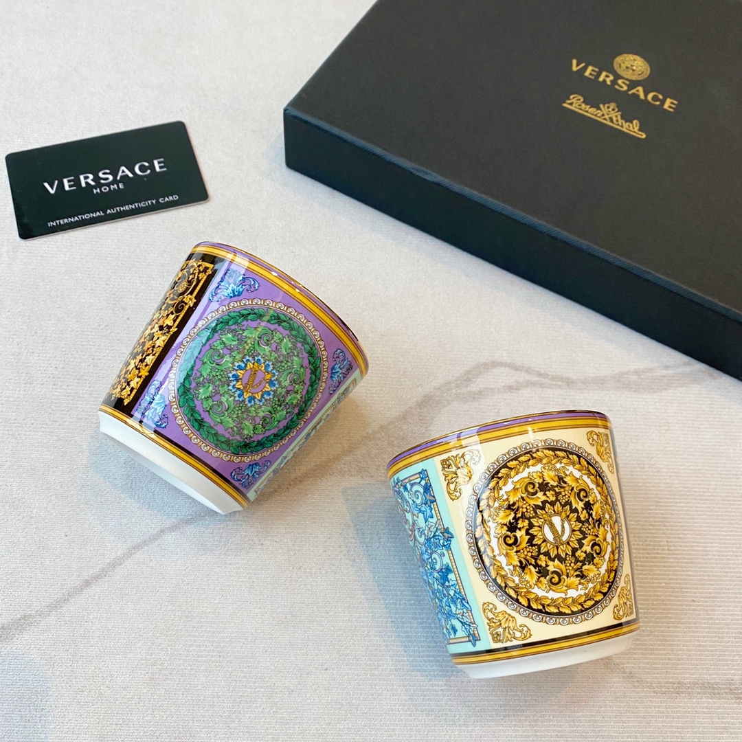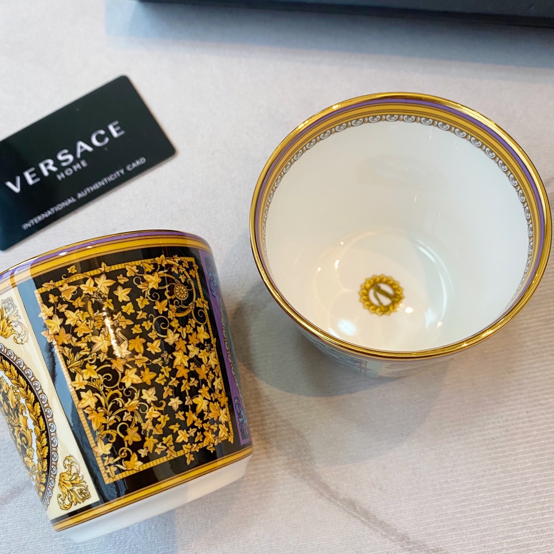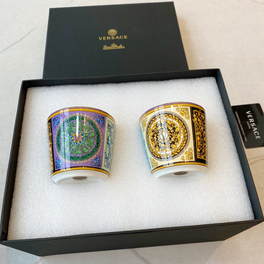 Versace spring and summer new products Baroque Kaleidoscope series Cup / pair of cups set -Rosenthal Meets Versace launches a very attractive new tableware-Barocco Mosaic Baroque Kaleidoscope series, inspired by Versace2021 early spring series Flash, with vivid colors and unexpected prints, inspiring a unique modern spark. -The pattern of the Barocco Mosaic Baroque Kaleidoscope series is renewed in the form of mosaic. The four classic prints are deconstructed and reorganized, and the design is combined with modern elements and vinyl records. Diversified and unique personality shapes are fun to play. novelty. Bold use of bright colors, such as elegant purple, soft mint green, create a fresh and charming look, and then match with Versace’s classic gold tones, gorgeously show the rich and beautiful urban style, awaken happiness and vitality.