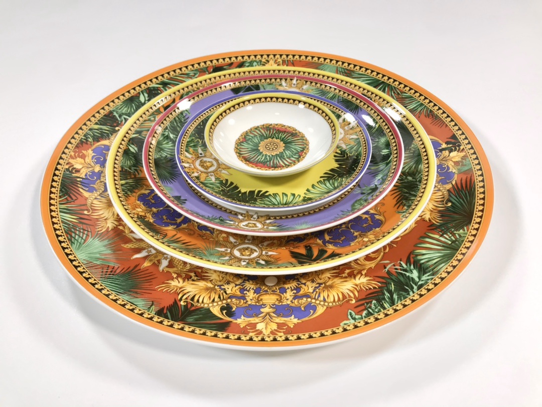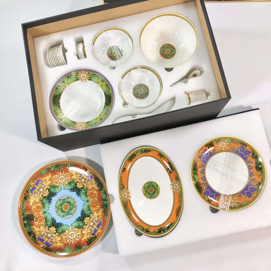 Tableware for 58 heads and 10 people Versace – Color Forest Collection Combining the iconic jungle print with animal prints and vintage Medusa styles for yet another stunning collection. 1400 degrees high temperature firing, fine texture, hard and light, not easy to scratch.22K gold powder stroke, fine pattern. High-quality refined people add a luxurious touch. Configuration: 58 Chinese food 10 people 15cm bowl 10 Spoon 10 Middle plates 10 Small plates 10 14 inch large fruit plate 1 10 inch flat plate 2 9 inch soup plate 4 8 inch flat plate 6 Fish plate 1 Big soup bowl 1 tablespoon 1 Small ashtray 1 Toothpick holder 1