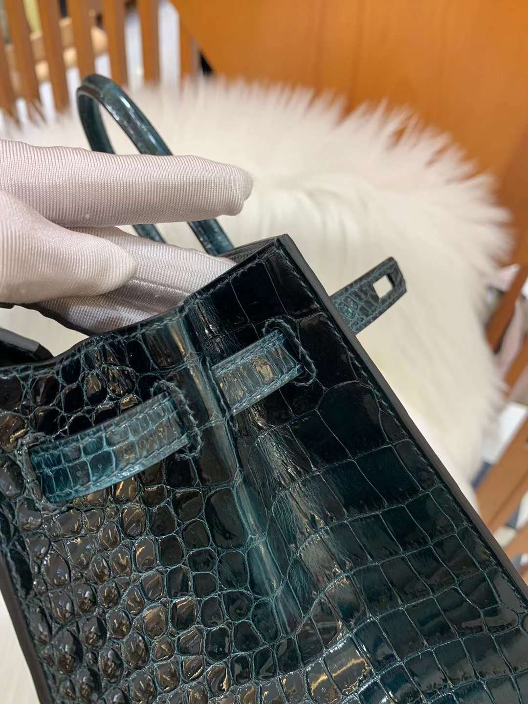 vert rousseau birkin sellier porosus croco