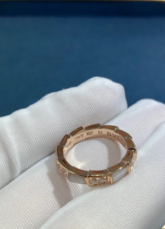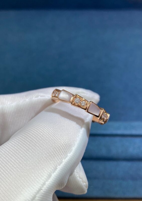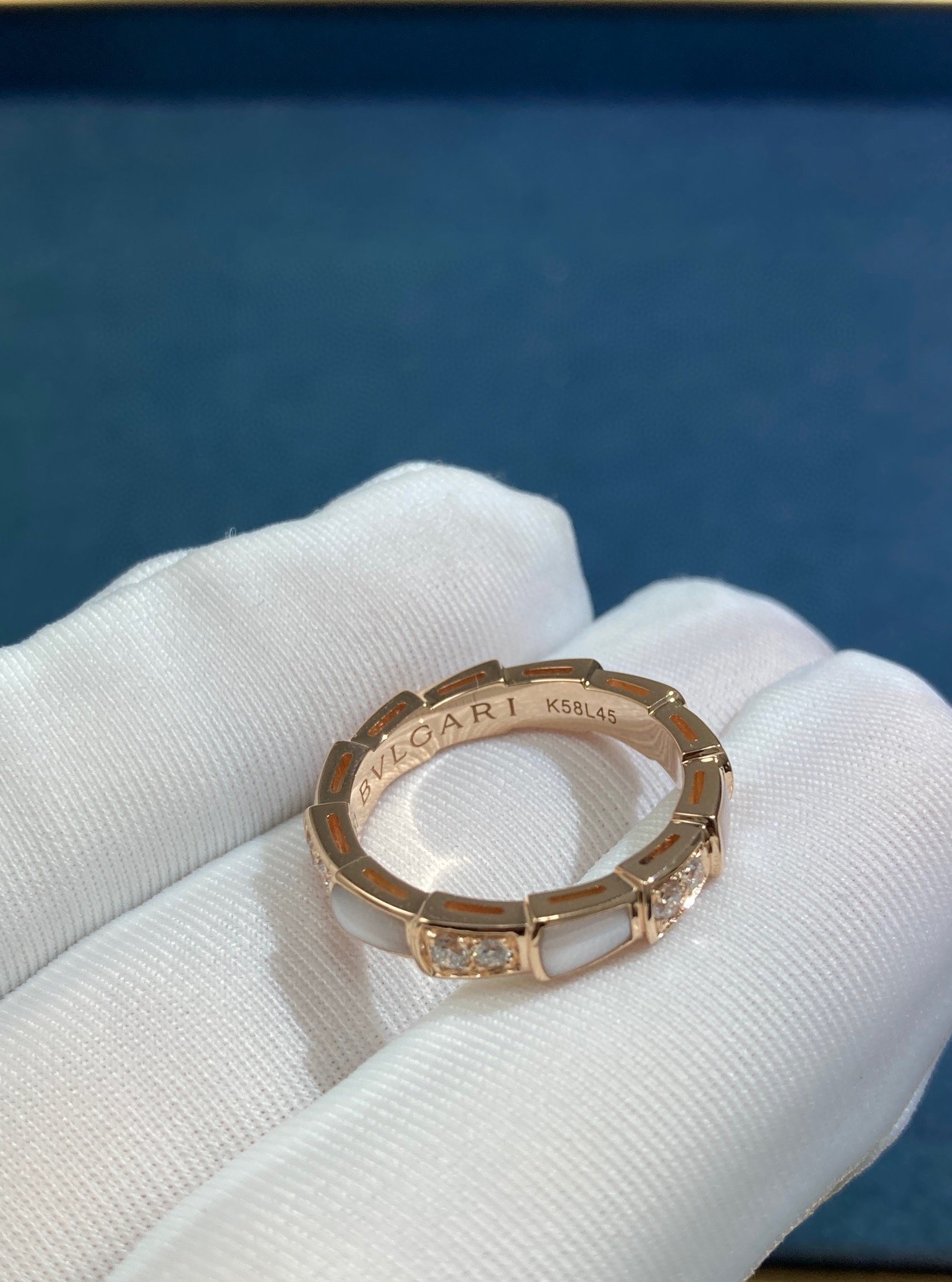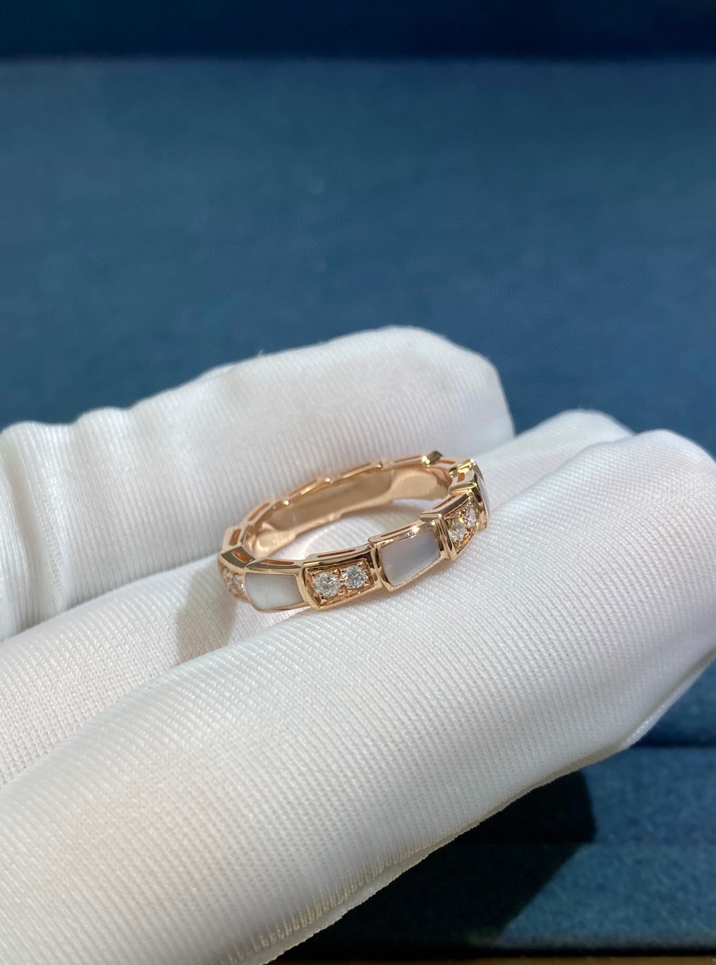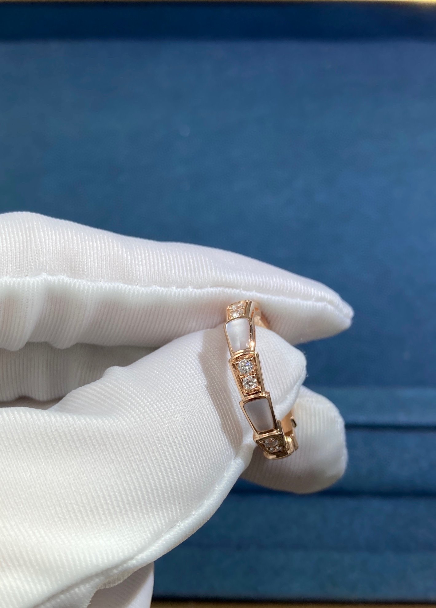 Bvlgary White Shell Diamond Snake Ring, Rose Gold