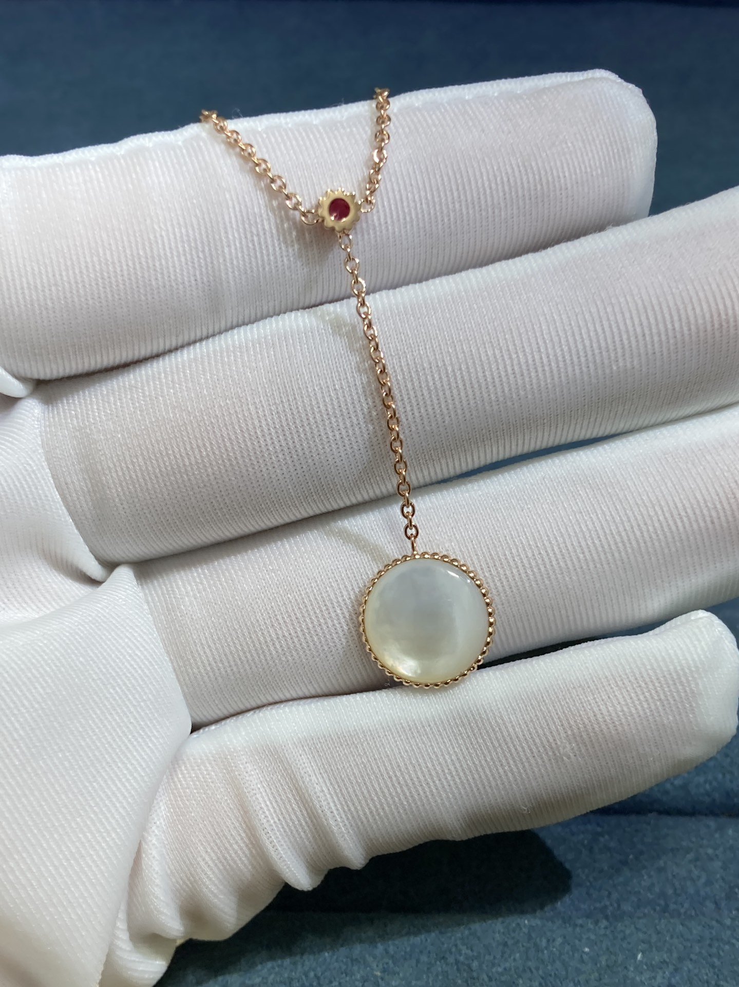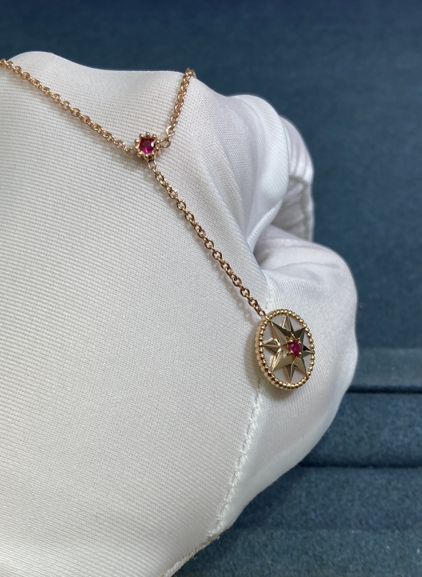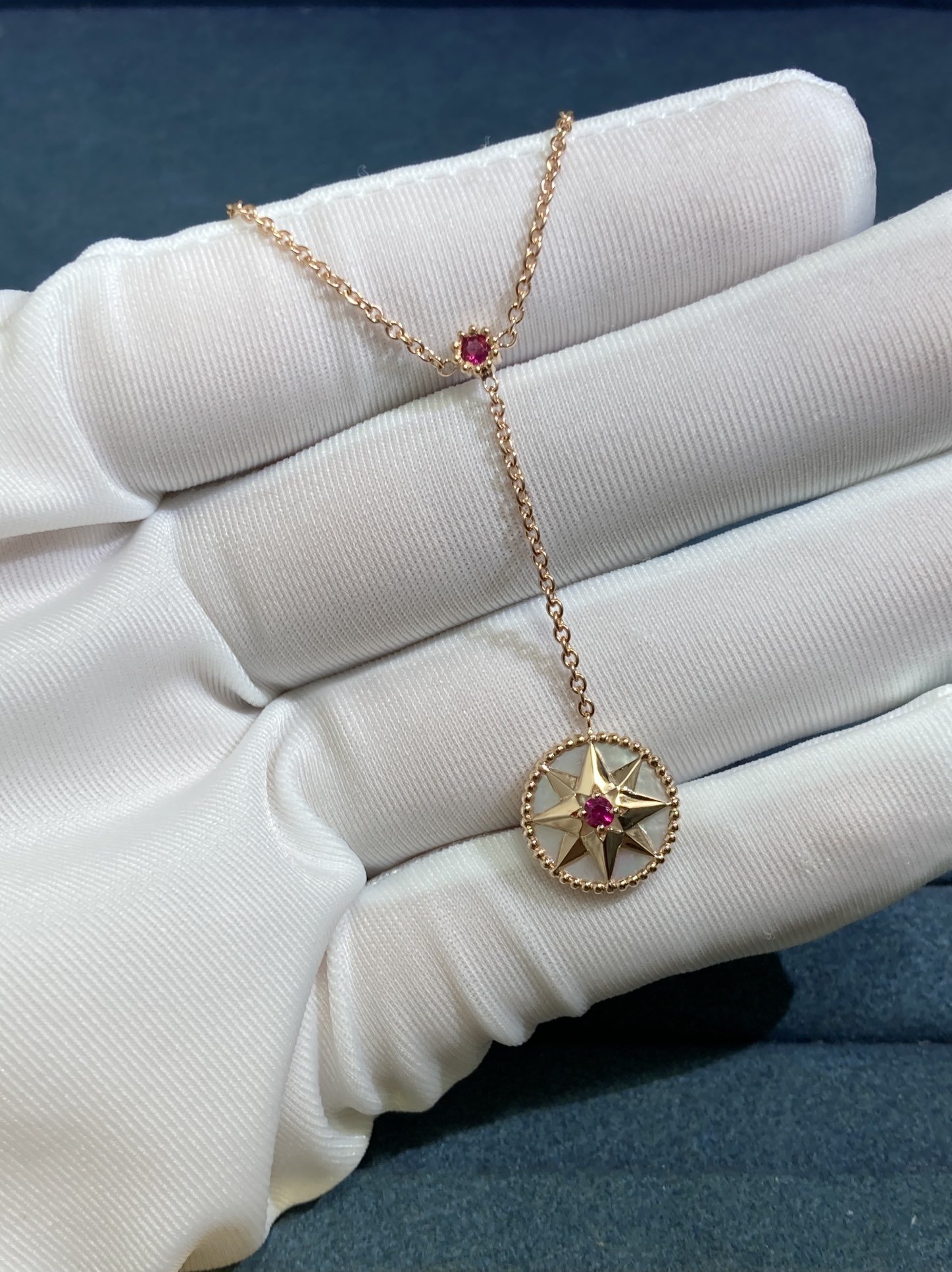 White Shell Ruby Compass Necklace, Rose Gold