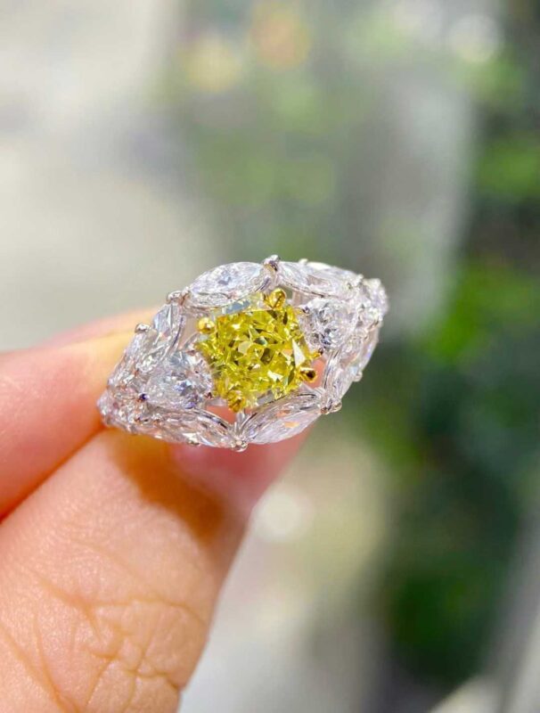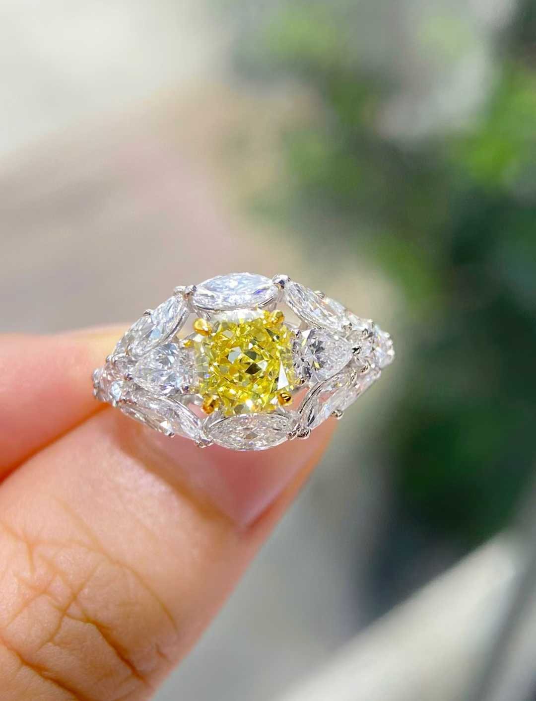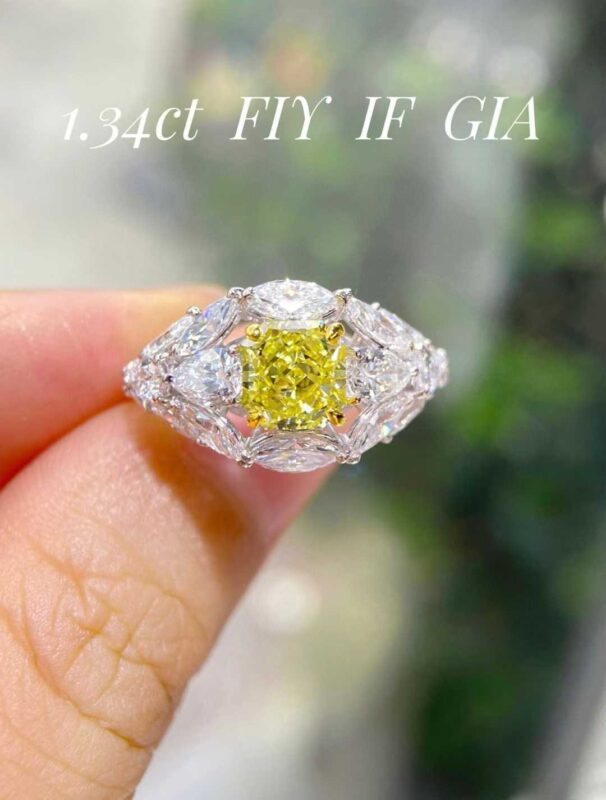 🆕『1.34ct Radiant Cut Fancy Yellow Diamond Ring』