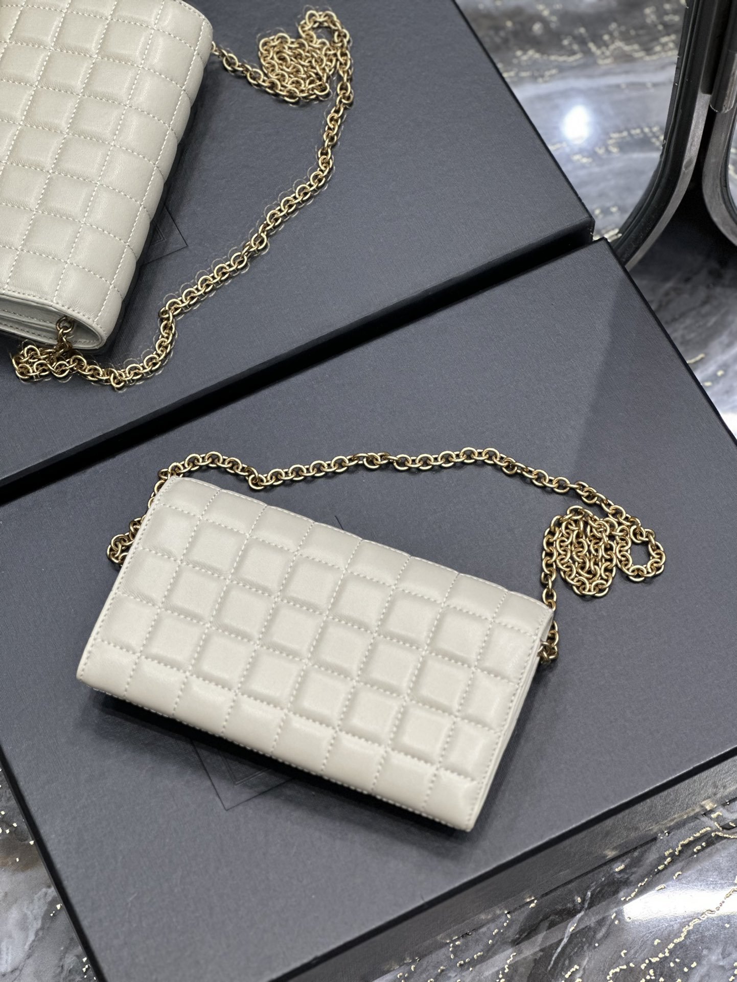 Absolutely right belongs to the love at first sight series! The square quilted texture exudes a diamond-like glamorous brilliance! The unique metal hardware clasp is connected together like two chains. The soft lambskin feels great. The whole bag is made of lambskin inside and out, which is very comfortable regardless of the softness of the leather texture! The interior features six card slots, a zip pocket, a main compartment and a flat pocket. The real coexistence of practicality and beauty!