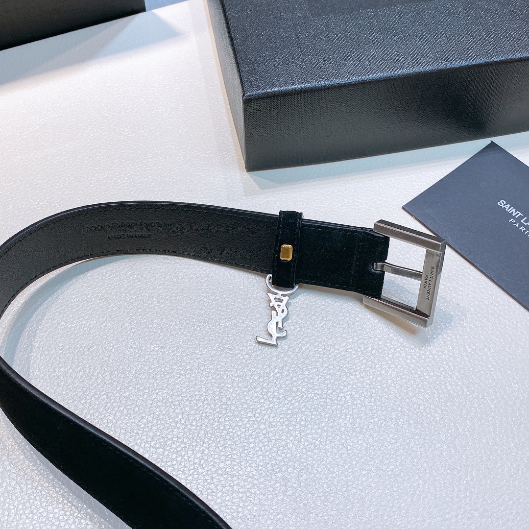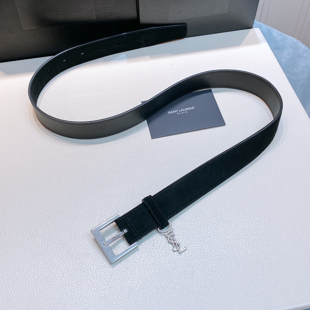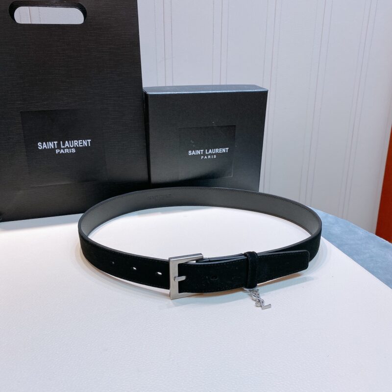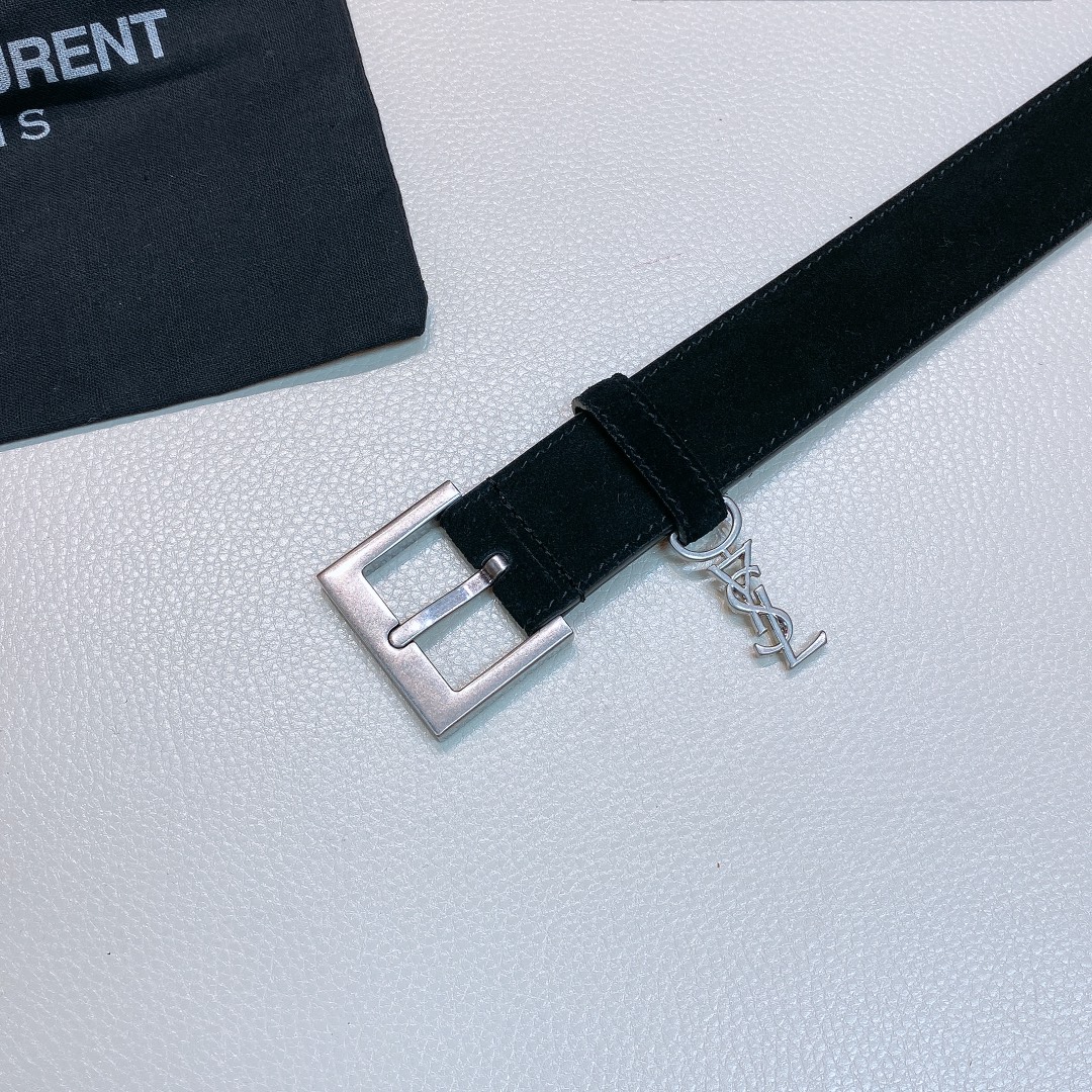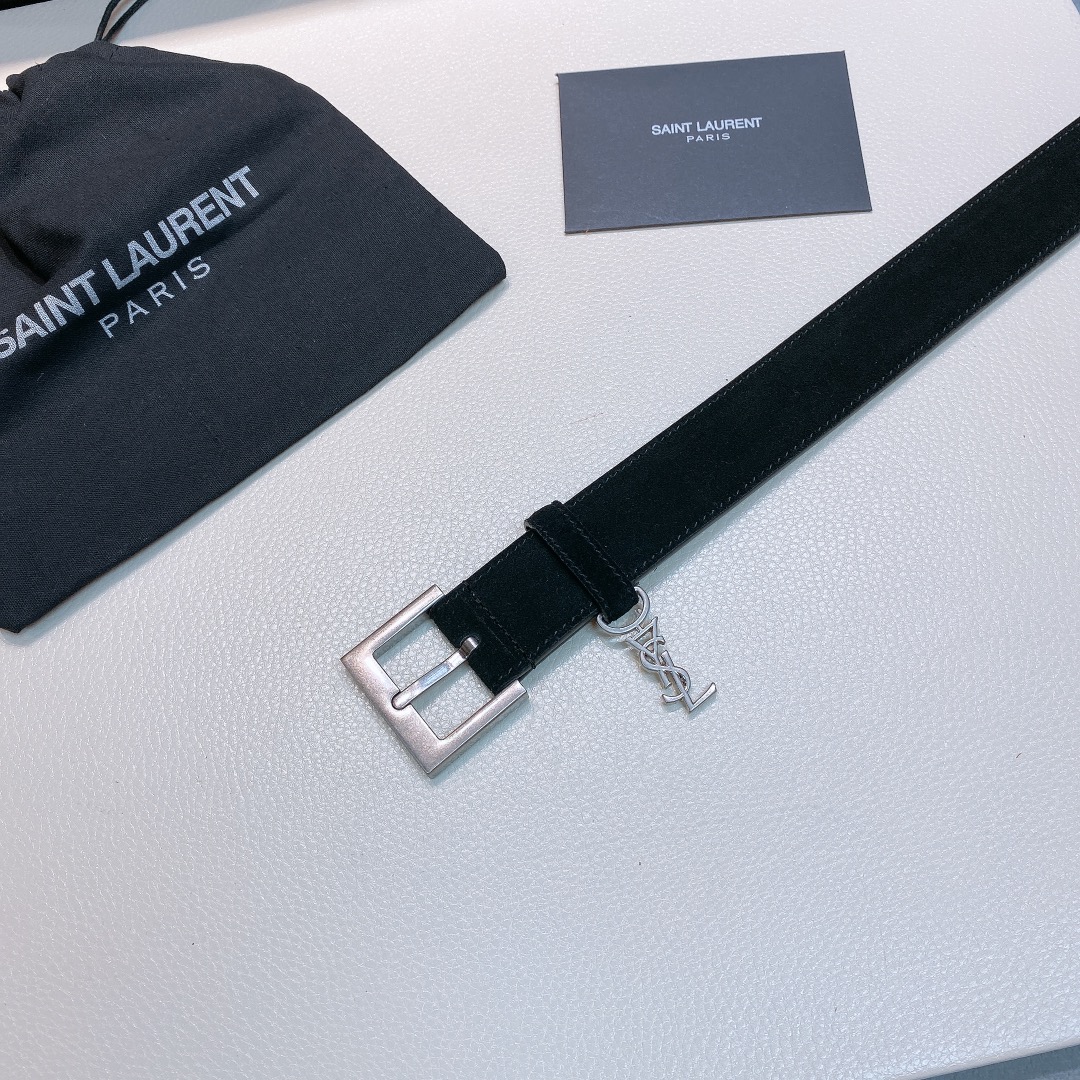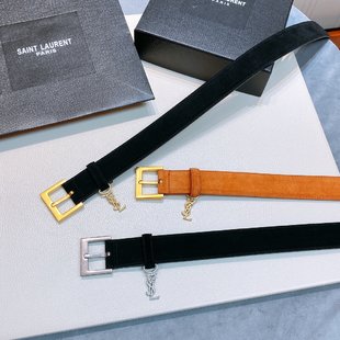 SainT.LAuRENT.PARIS. Faux suede pin buckle. Pendant ysl letter logo, retro copper, silver. Simple and versatile! 26089660