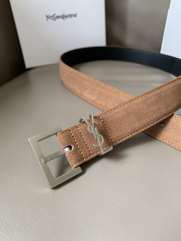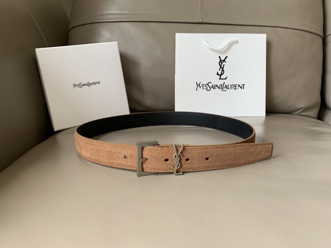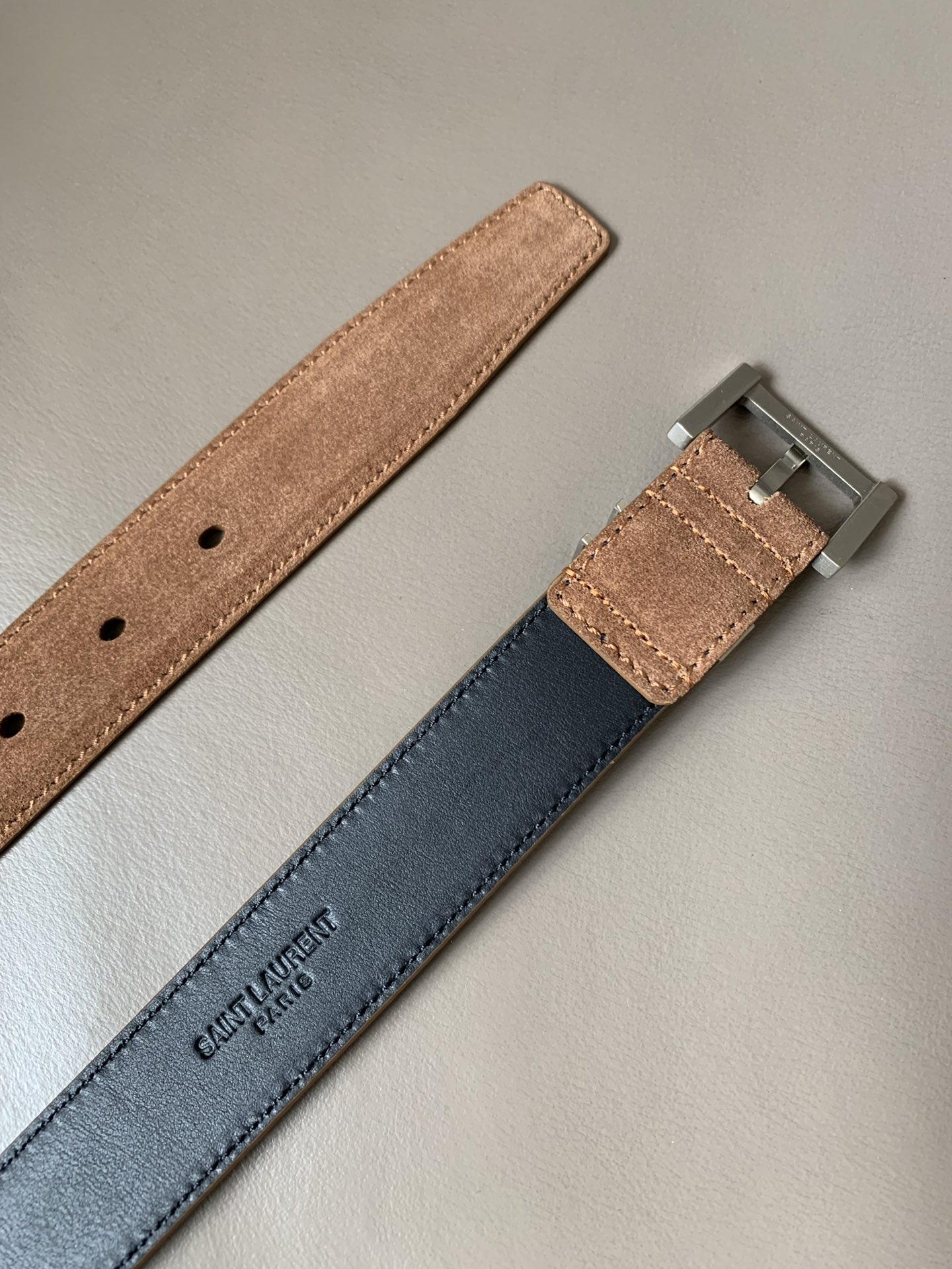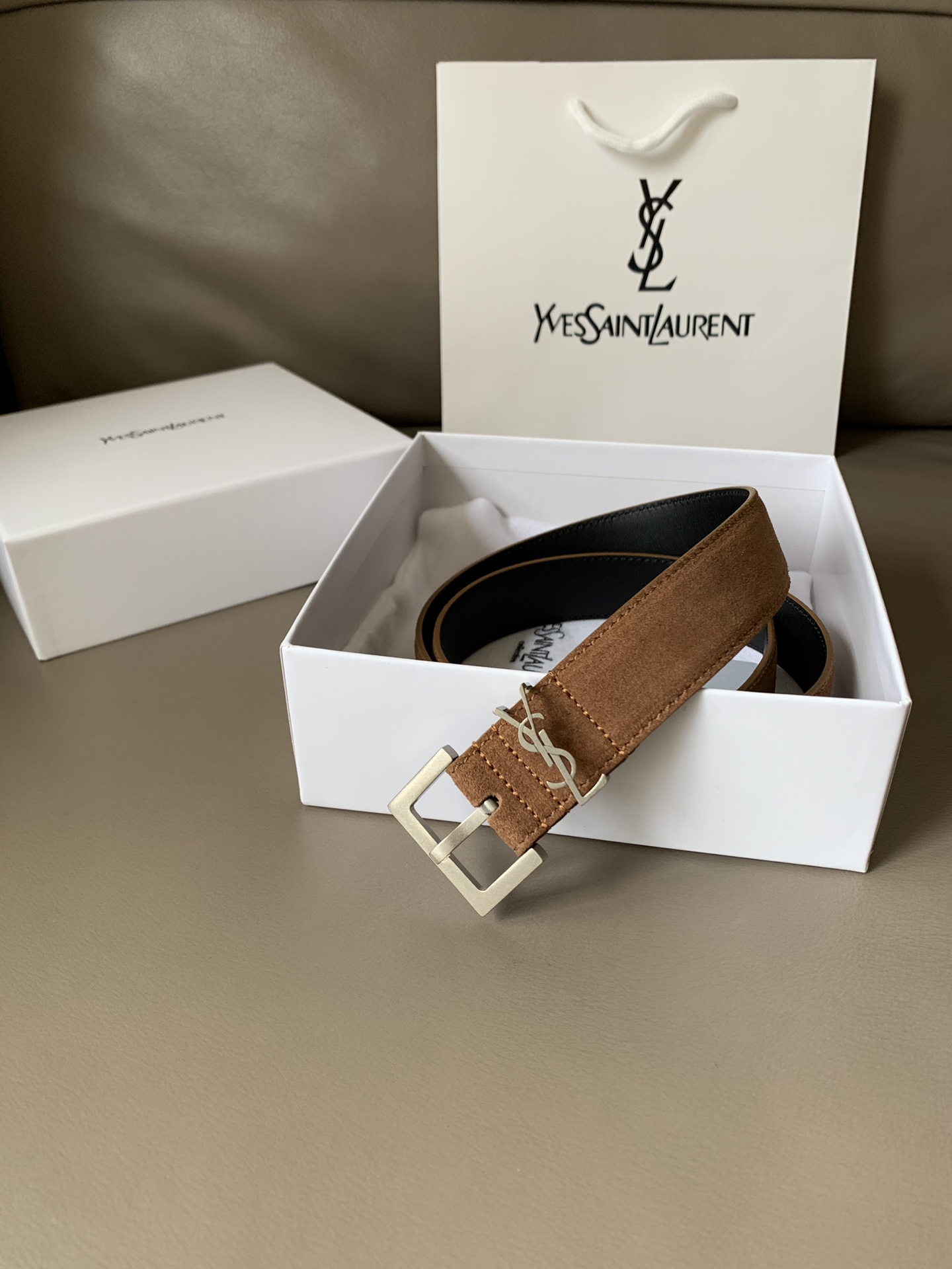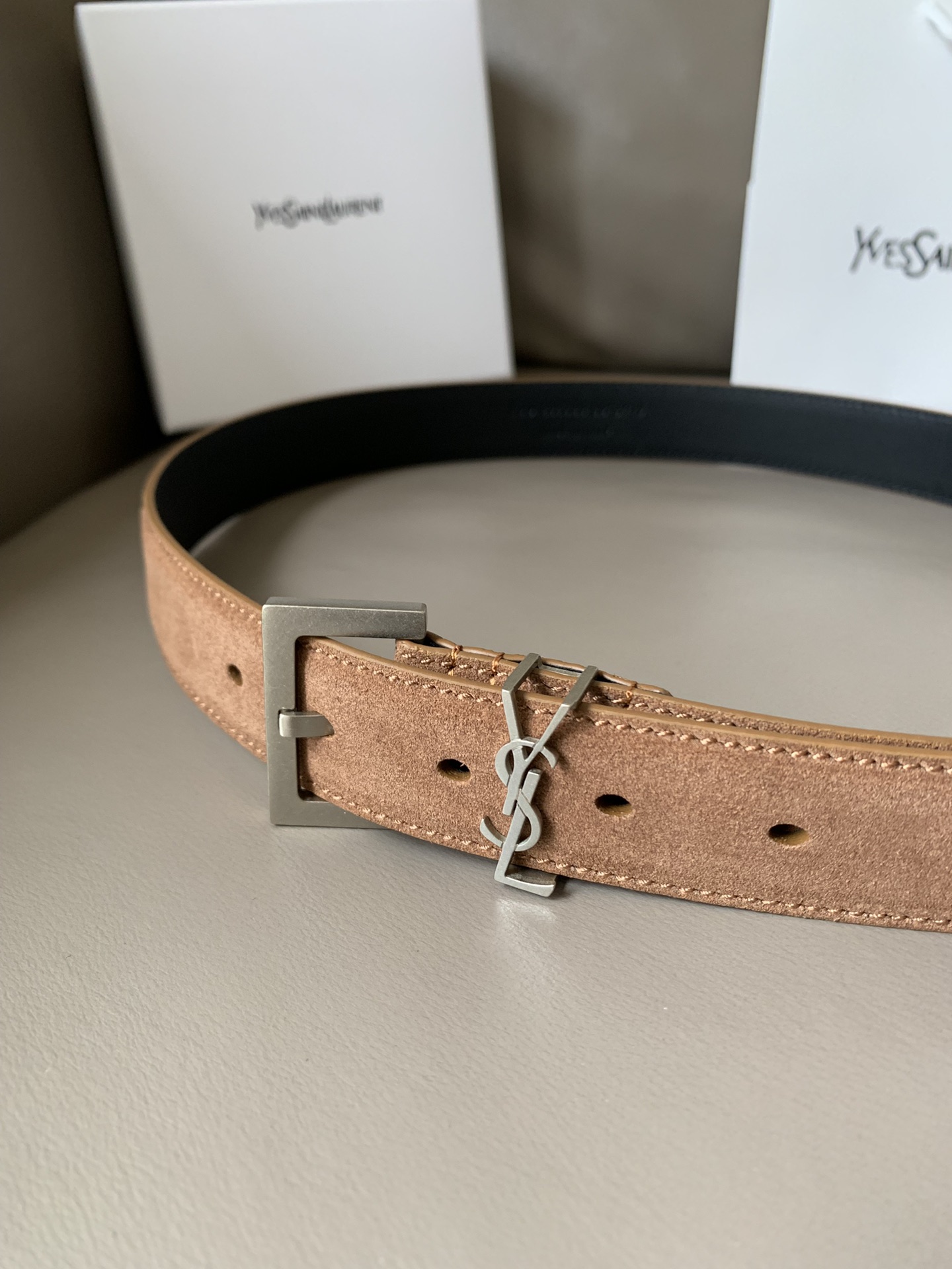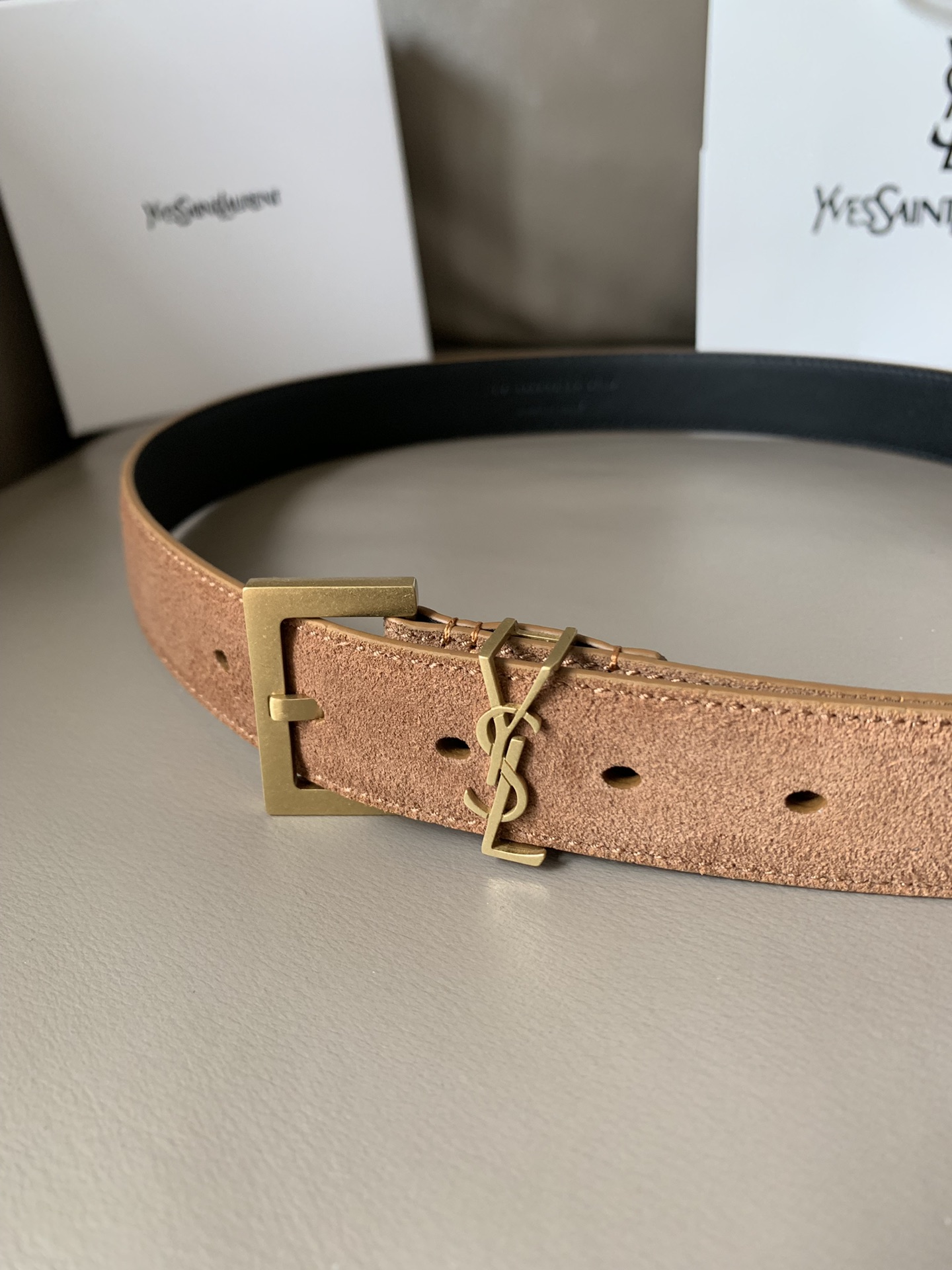 YSL (Yves Saint Laurent) new counter fashion casual belt for women, 3cm wide MONOGRAM suede square buckle belt, soft to the touch, square pin buckle CASSANDRE logo belt loop, top workmanship! 2608232681