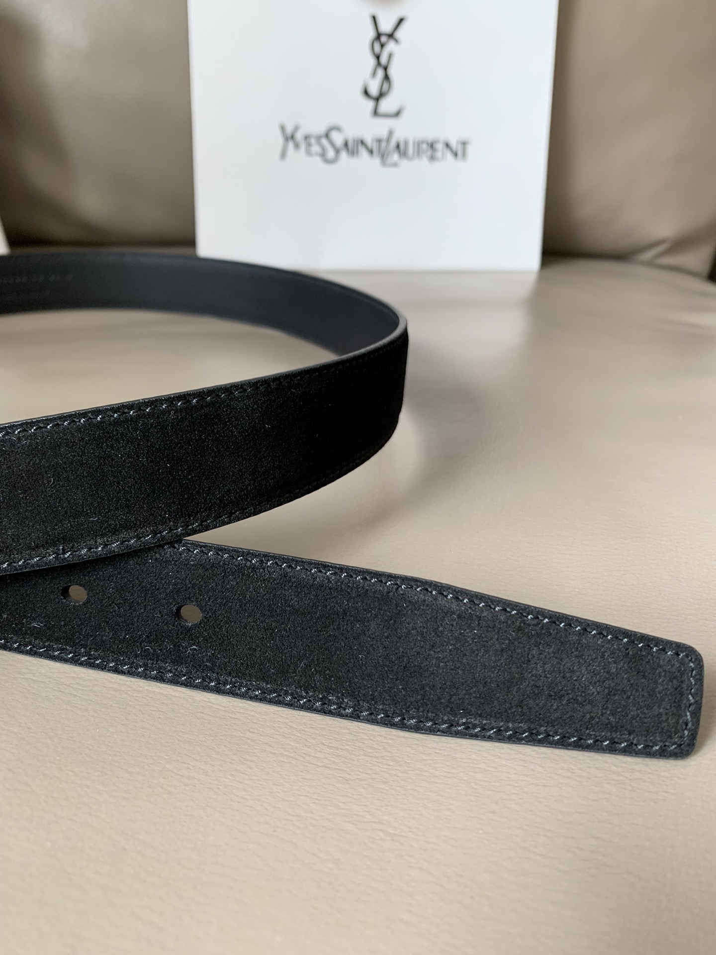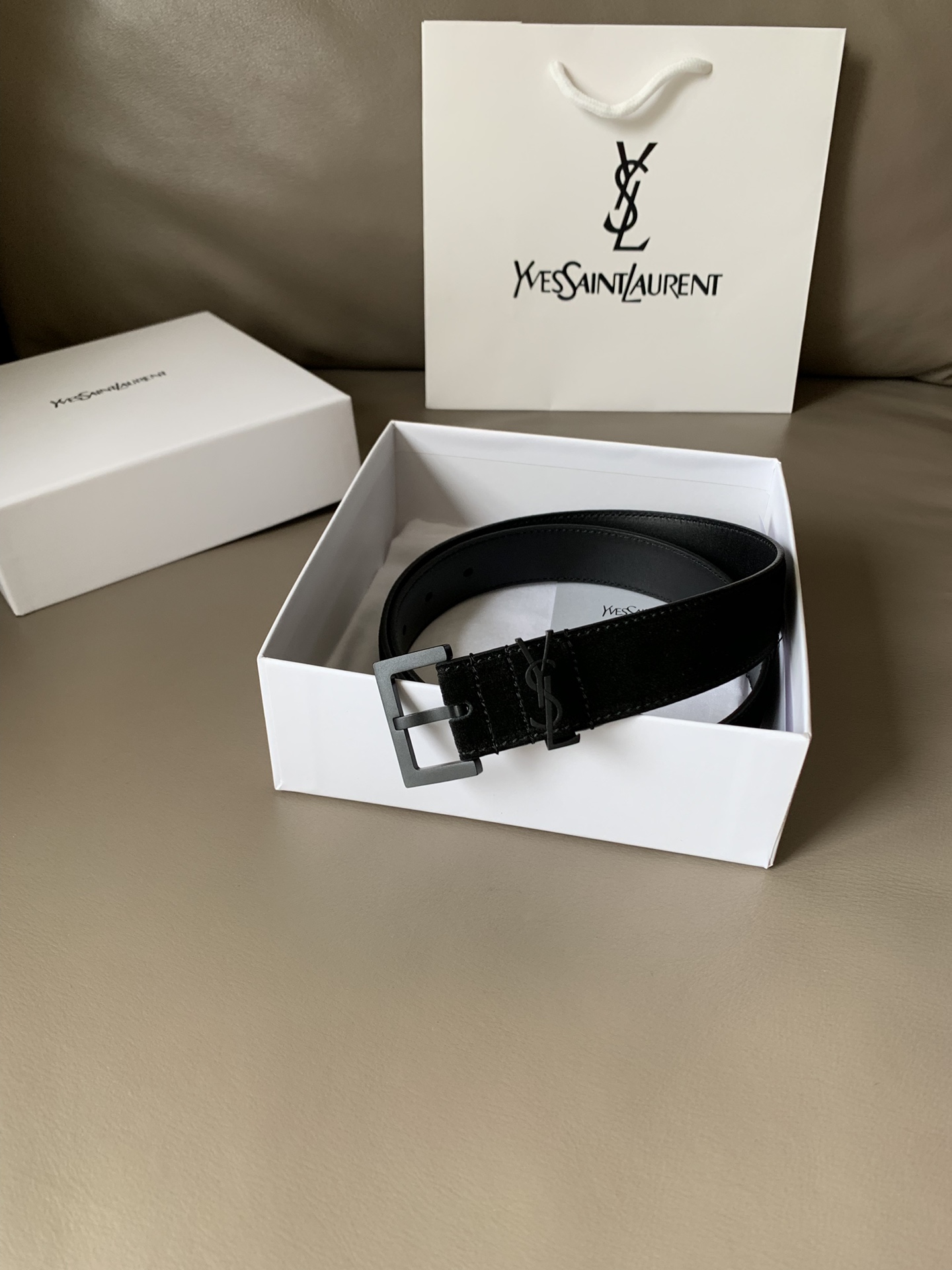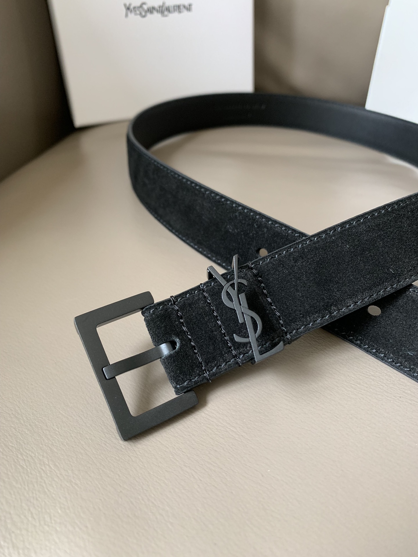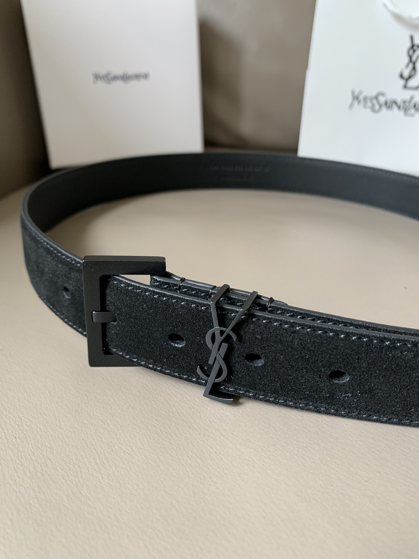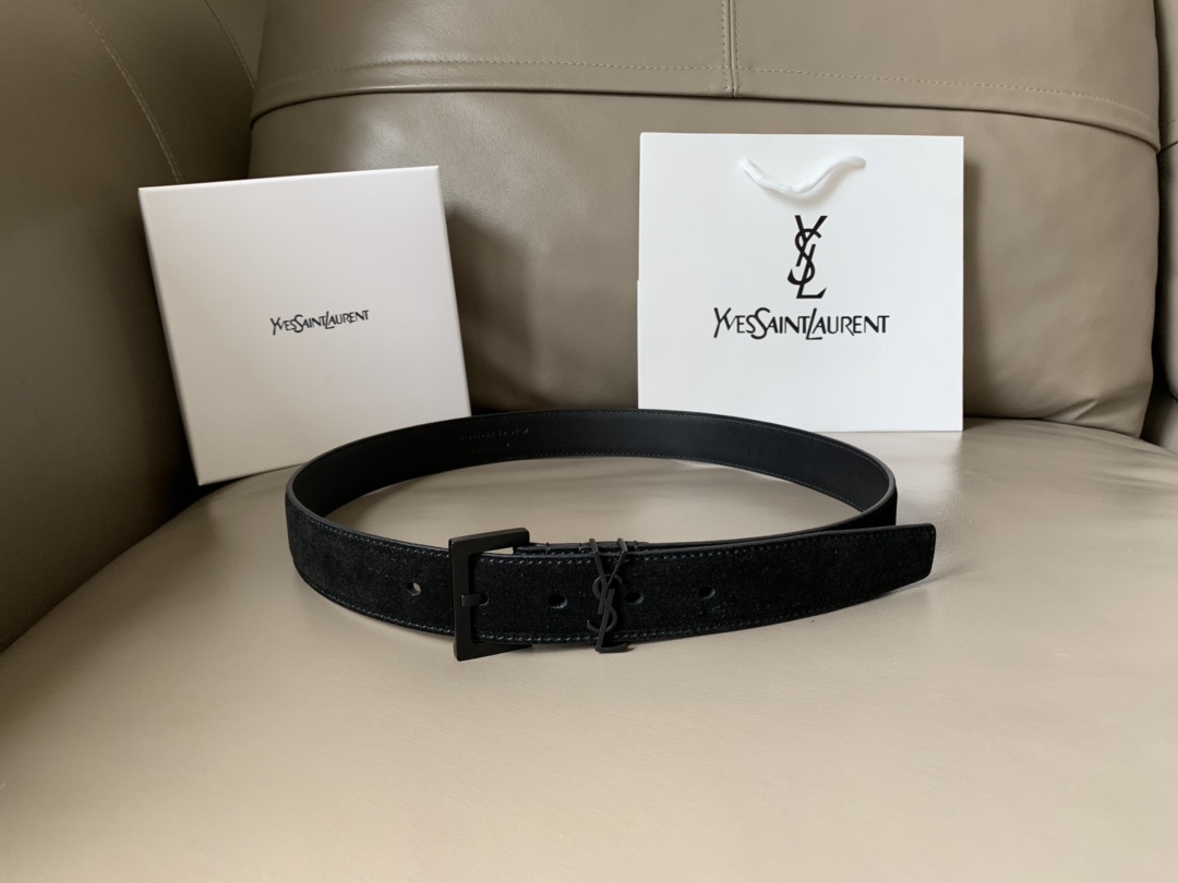 YSL (Yves Saint Laurent) new counter fashion casual belt for women, width 3cm MONOGRAM suede square buckle belt, soft to the touch, square pin buckle CASSANDRE logo belt loop, top workmanship! 2608232681