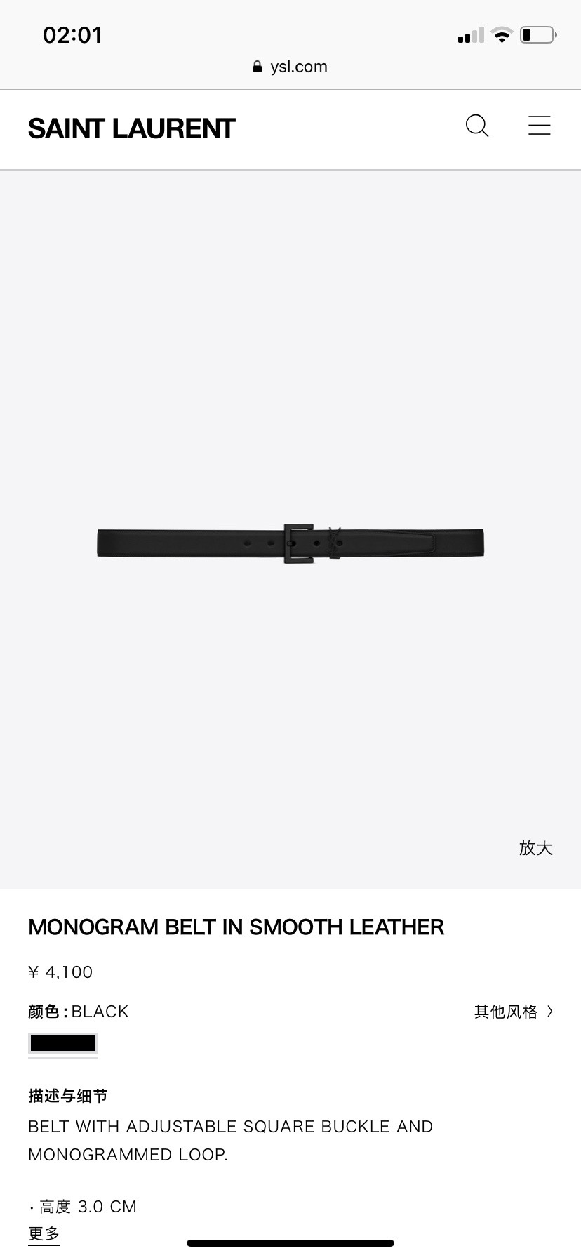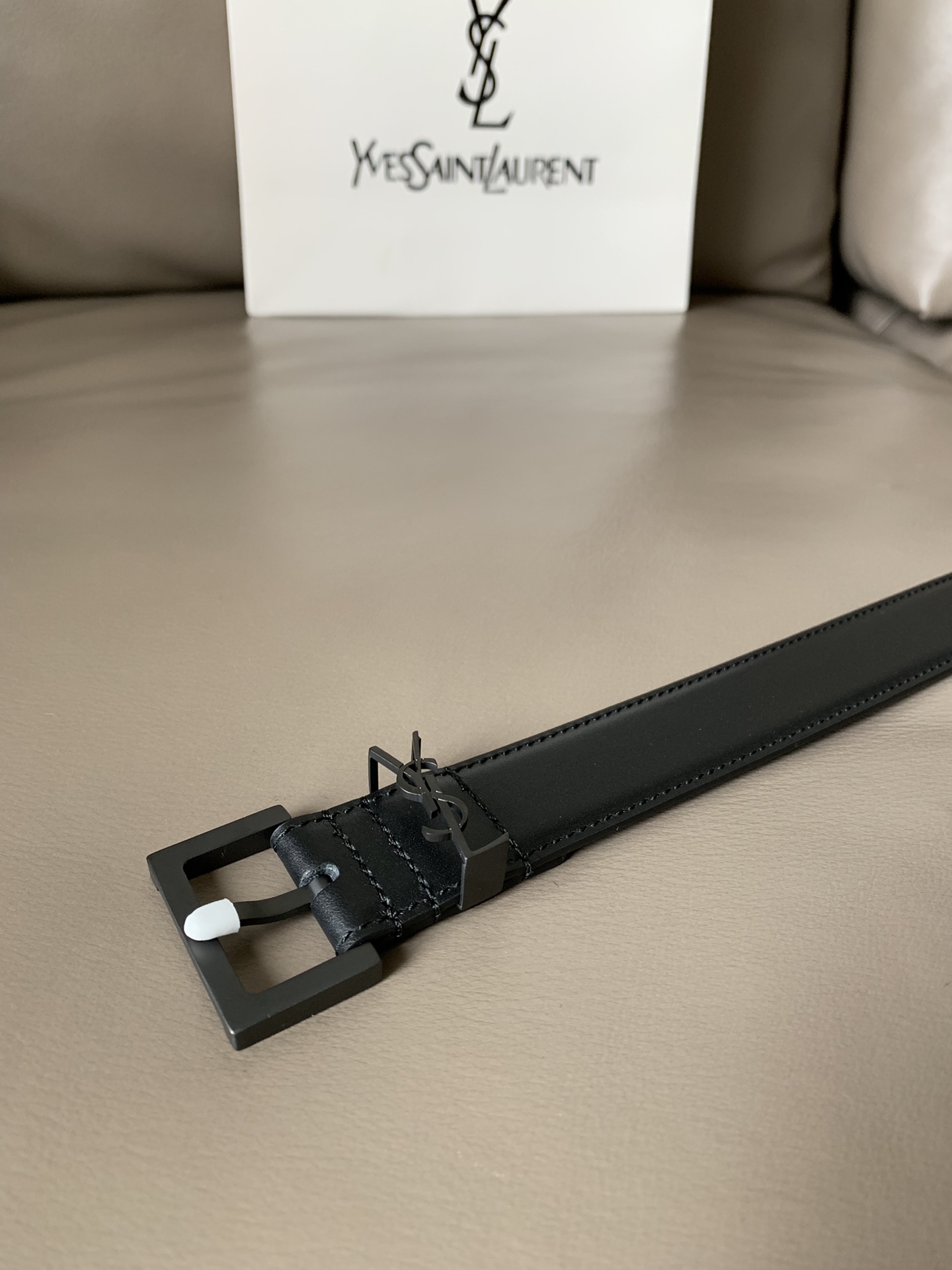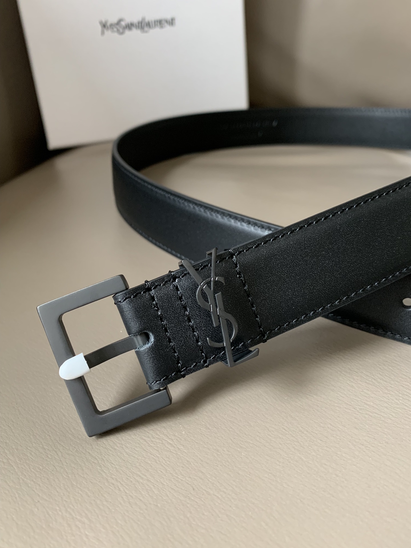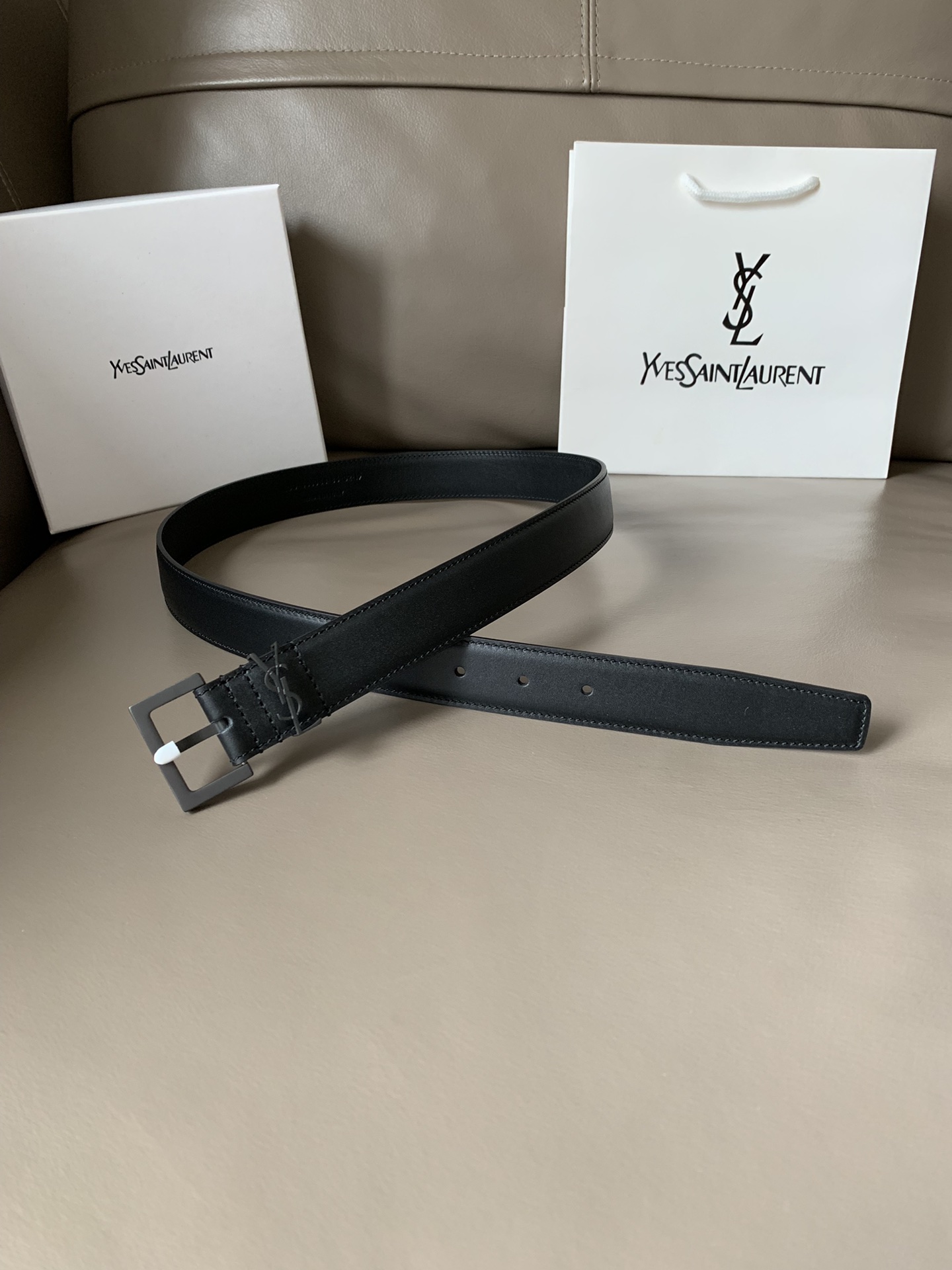 Saint Laurent (Saint Laurent) counter of the same style ladies fashion luxury belt width 3cm double-sided top layer calfskin soft feel stainless steel hardware square buckle YSL logo belt loops. Top workmanship, original order quality.
