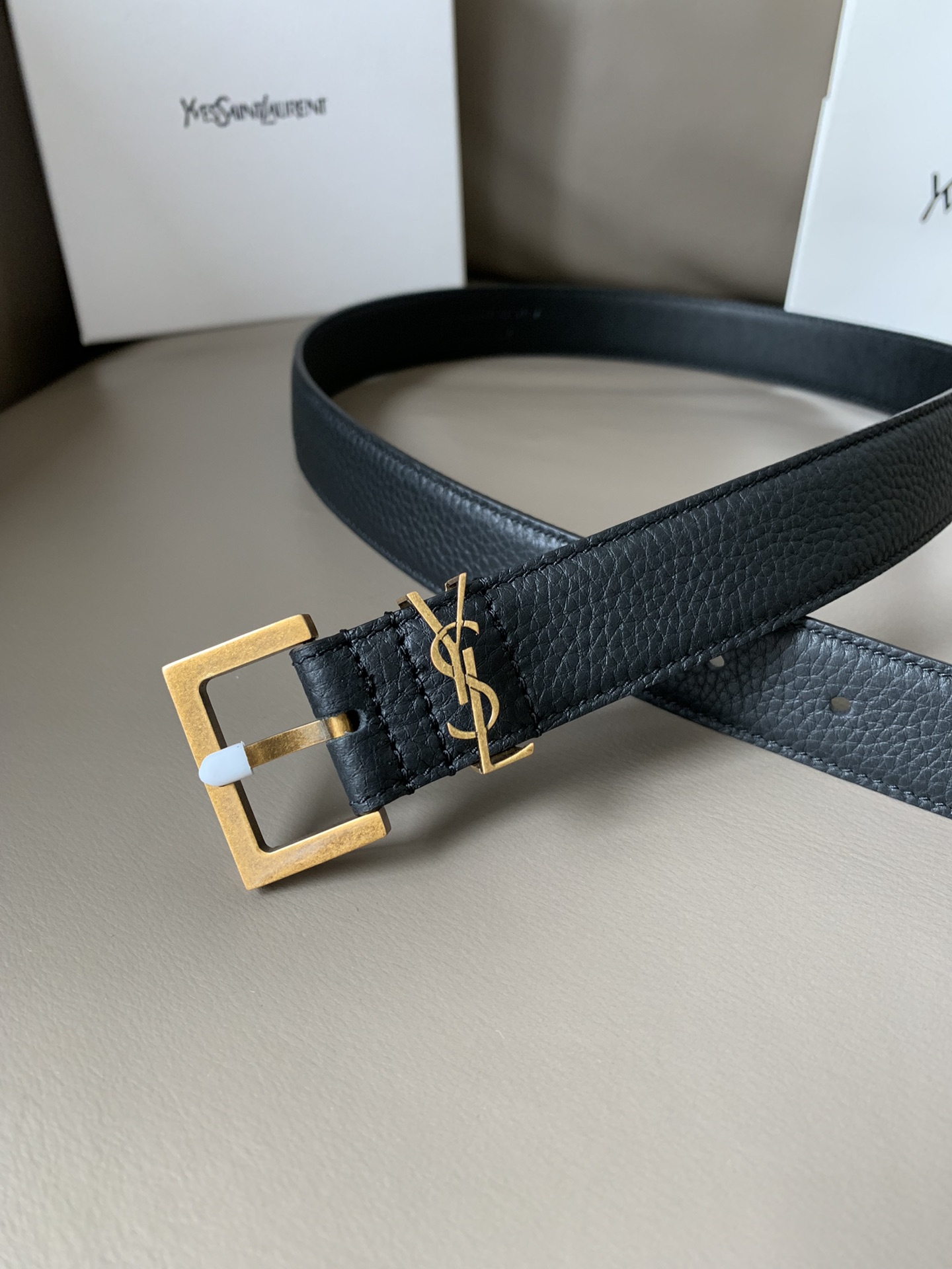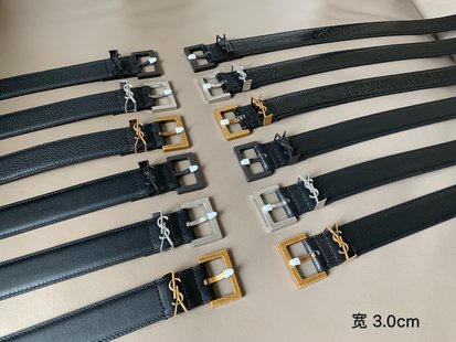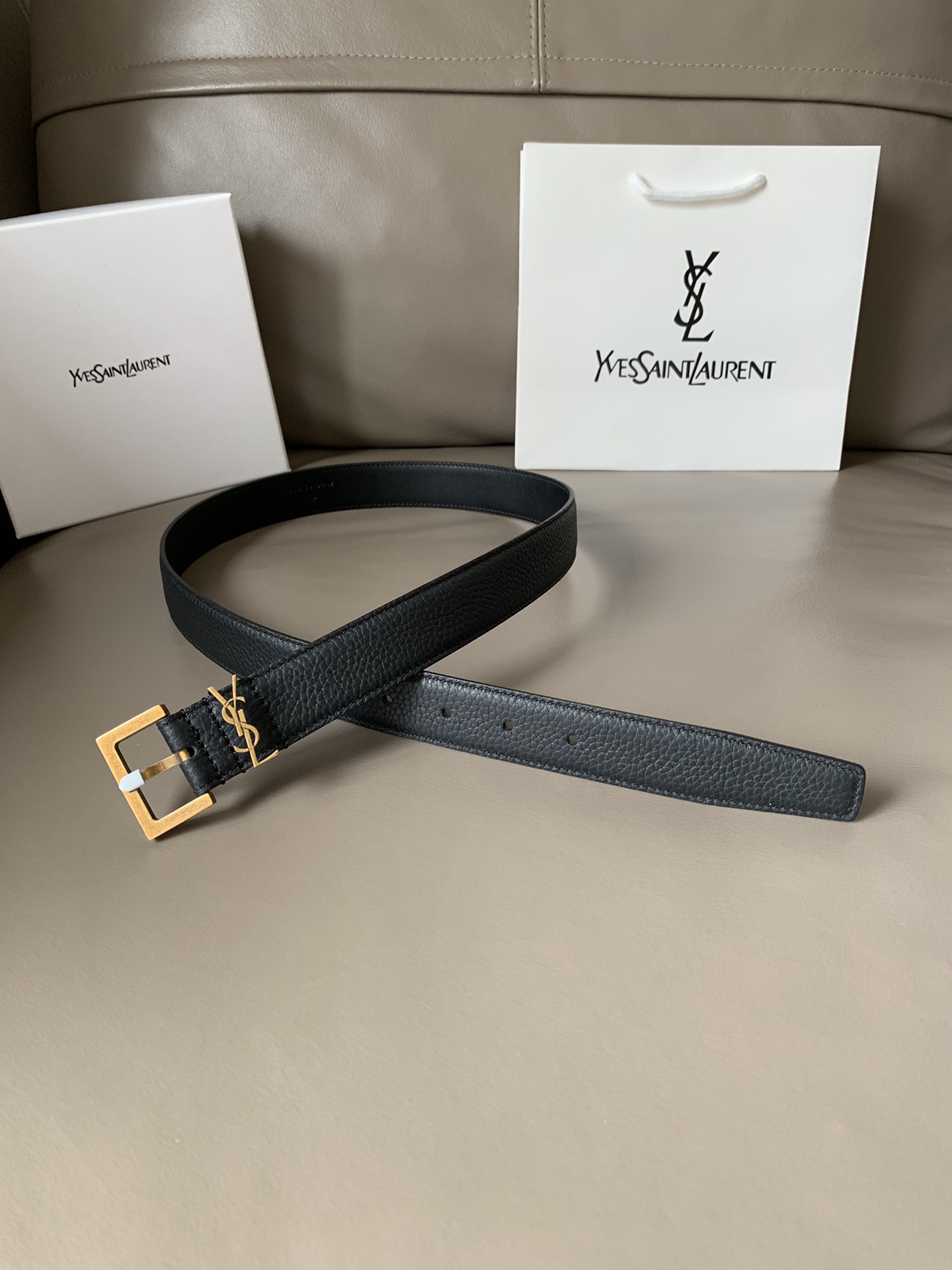 Saint Laurent (Saint Laurent) counter of the same style ladies fashion luxury belt width 3cm double-sided top layer calfskin soft feel stainless steel hardware square buckle YSL logo belt loops. Top workmanship!