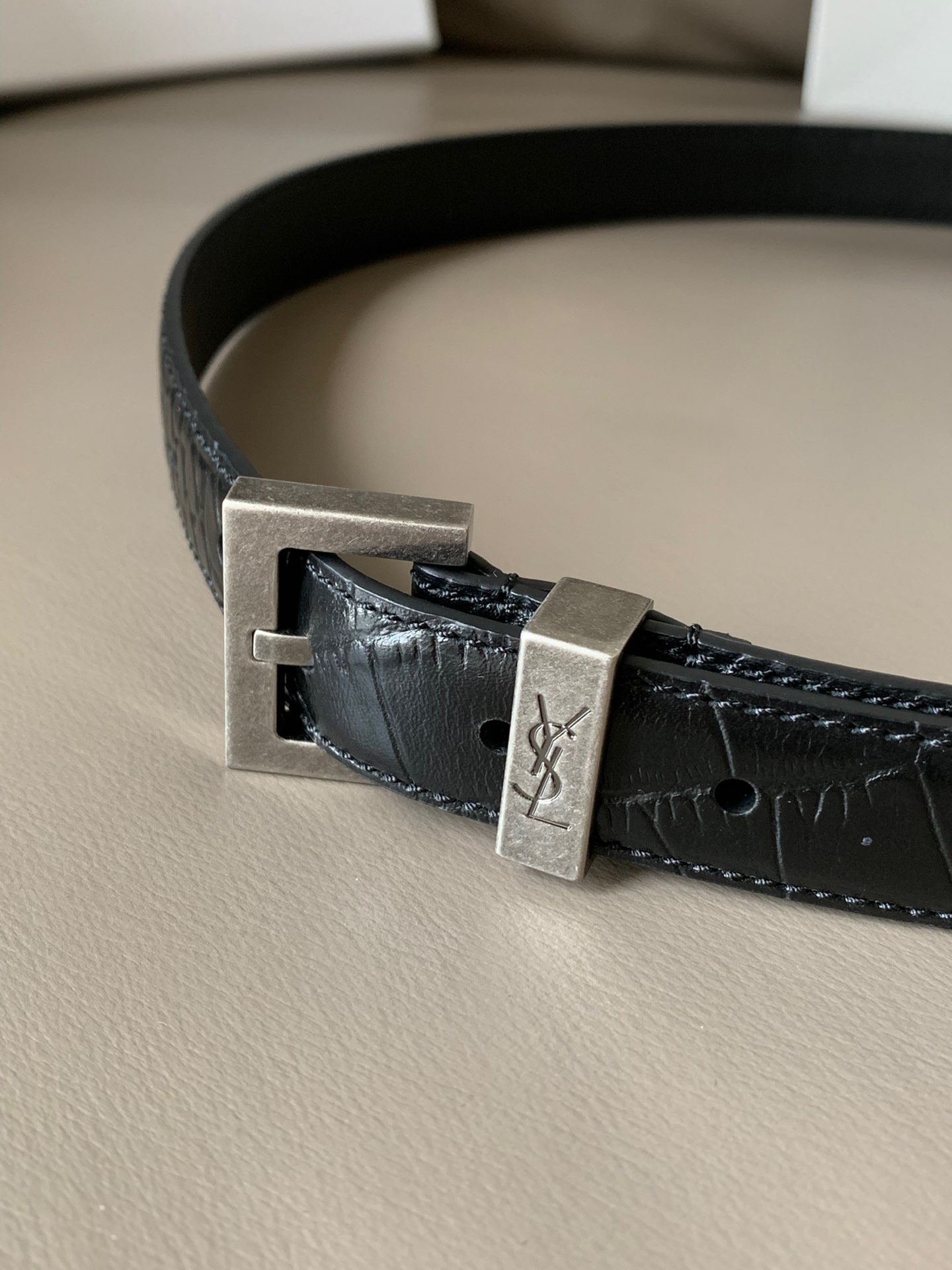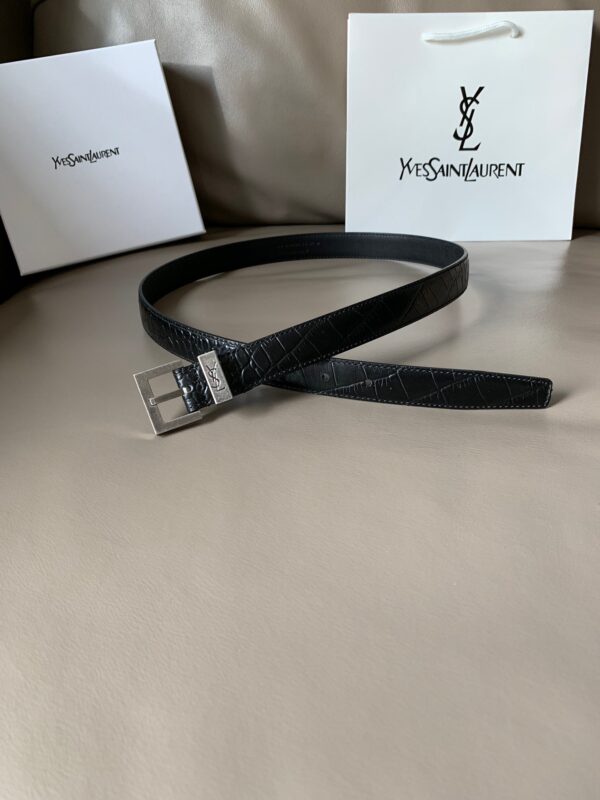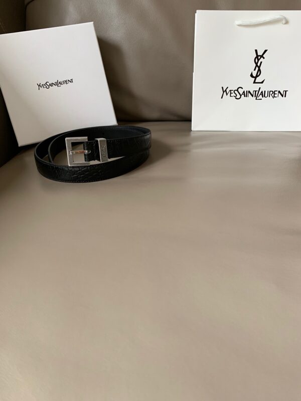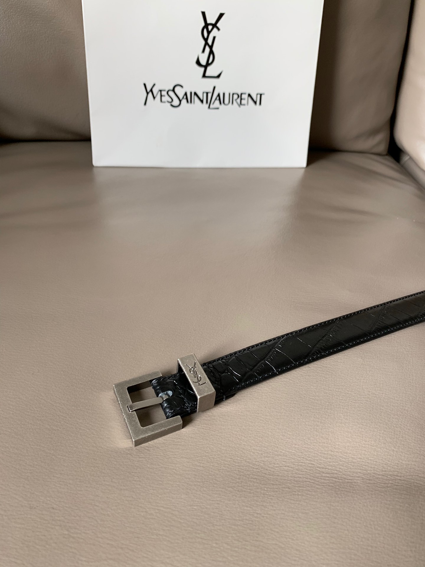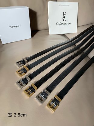 YSL (Saint Laurent) counter same style, SAINT LAURENT belt with square SAINT LAURENT logo engraved metal patch, metal buckle and metal ring, with engraved link YSL. Top workmanship, original quality, width 2.4cm240262381