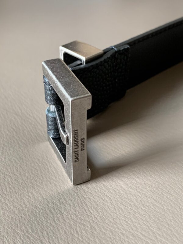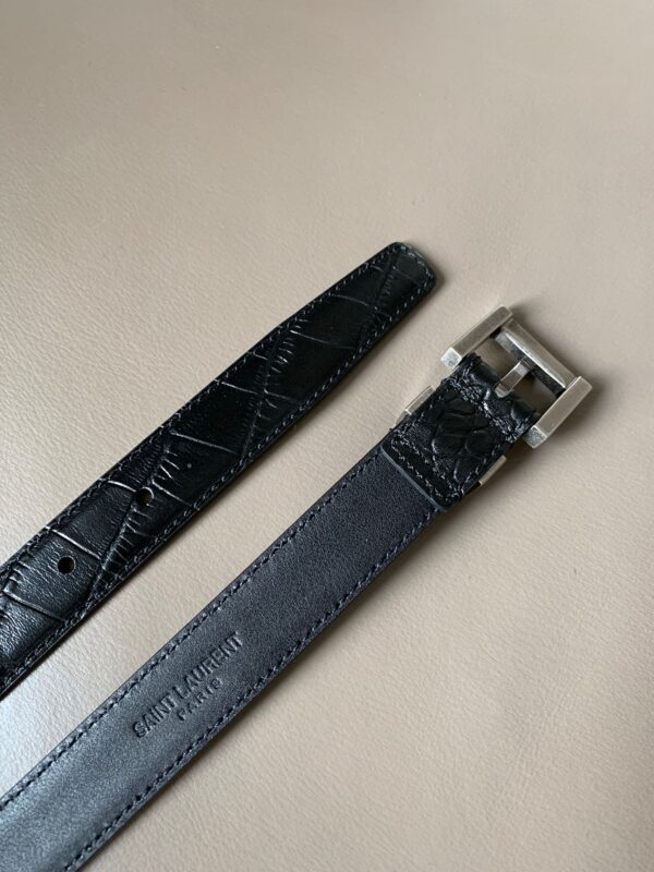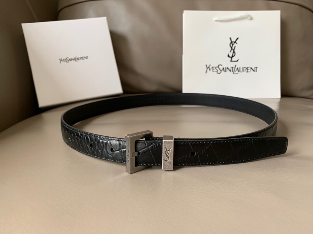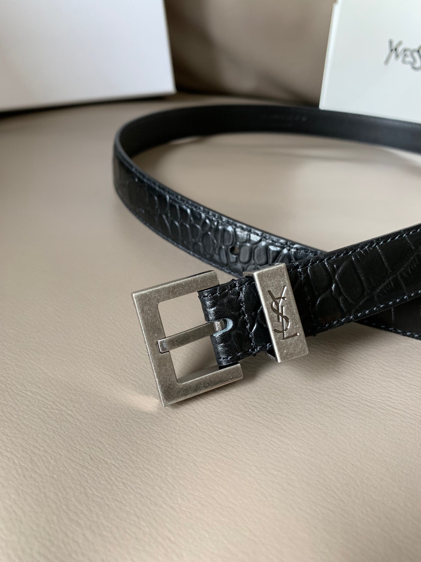 YSL (Saint Laurent) counter same style, SAINT LAURENT belt with square SAINT LAURENT logo engraved metal patch, metal buckle and metal ring, with engraved link YSL. Top workmanship, original quality, width 2.4cm240262381