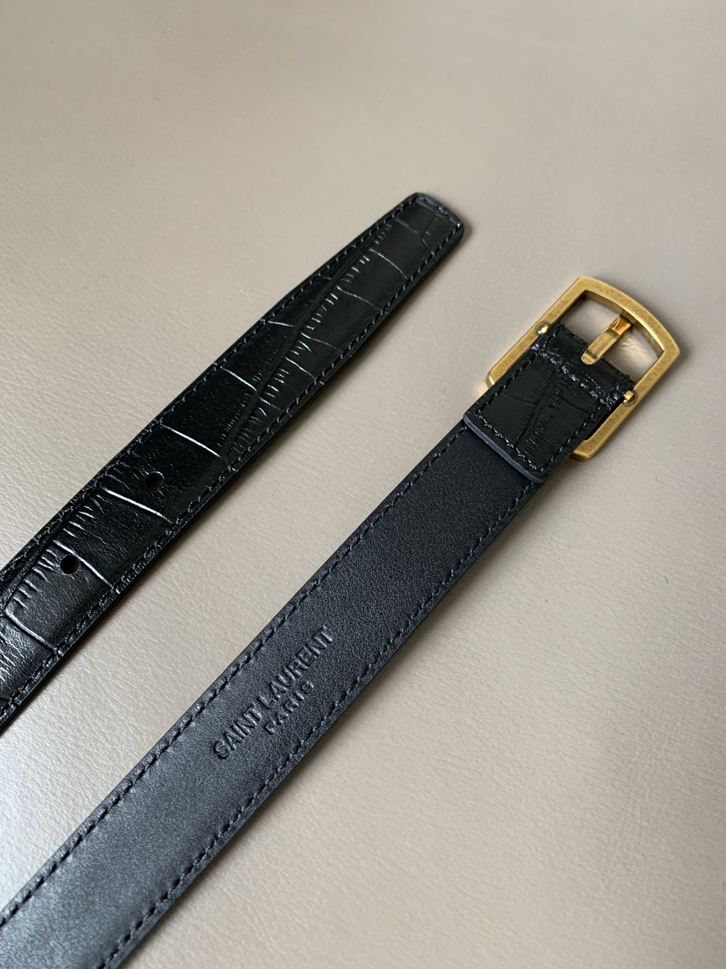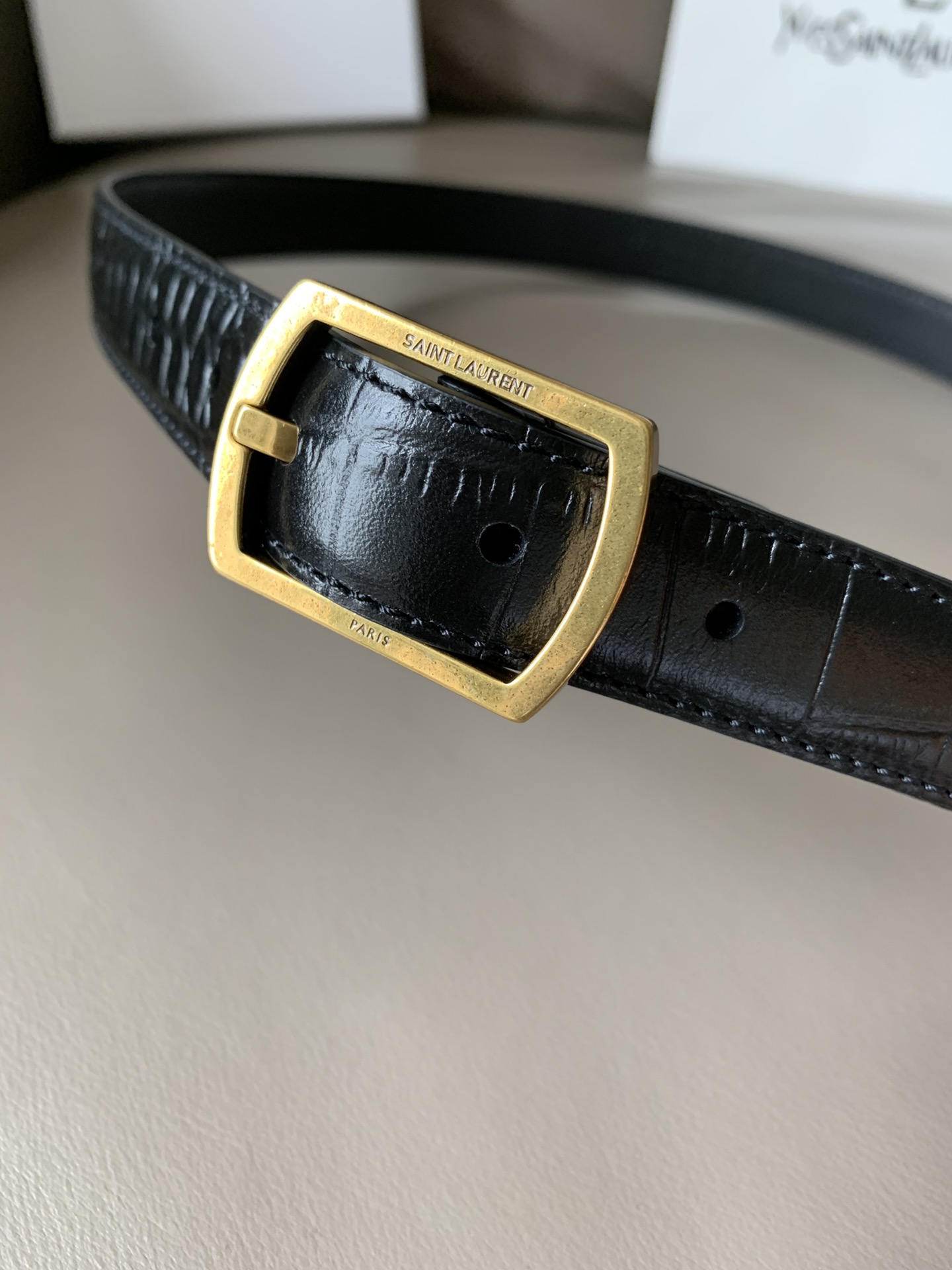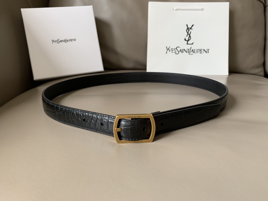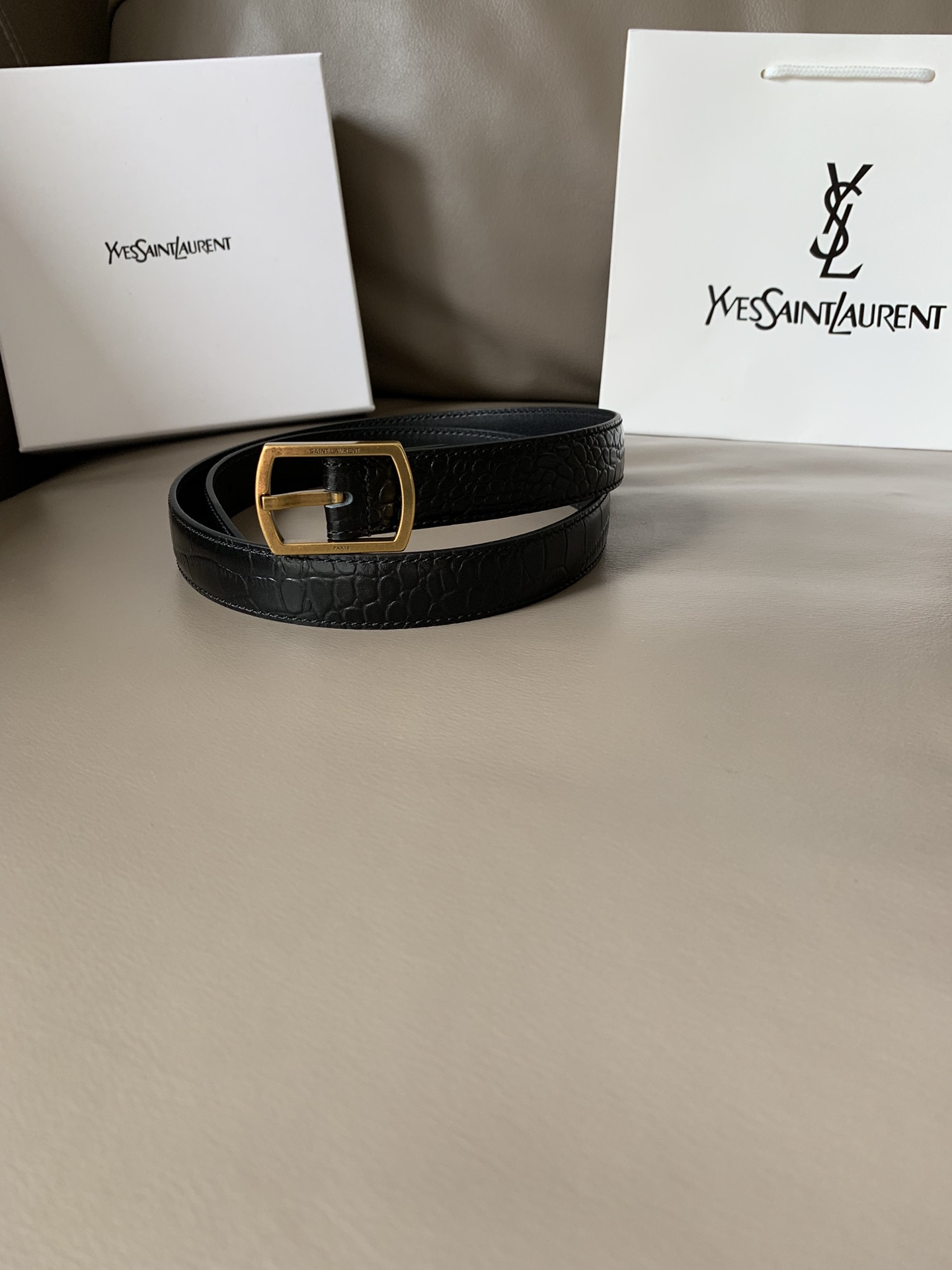The same style as YSL (Yves Saint Laurent) counters, women’s neutral high-end belt, 2.5cm wide, double-sided top layer calfskin, soft to the touch, classic rectangular buckle with engraved SAINT LAURENT logo, top workmanship, original single quality