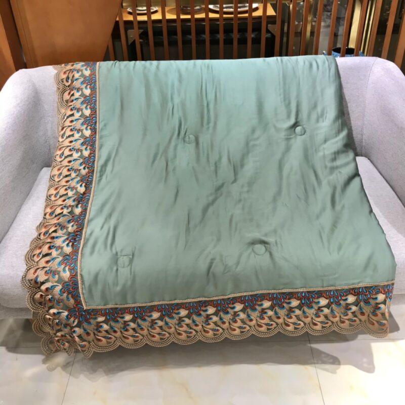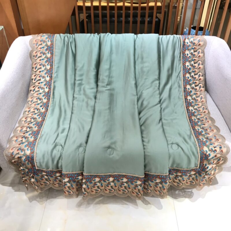 YSL lace air conditioning quilt Tencel is a green fiber in nature. It is made of wood pulp extracted from eucalyptus. The fabric feels silky and has strong air permeability. Fabric: 100% lyocell tencel + imported wide edge lace. Filling: 80% feather velvet + 20% mulberry silk Size: 200x230cm. Weight: filling 500g total weight 1800g.