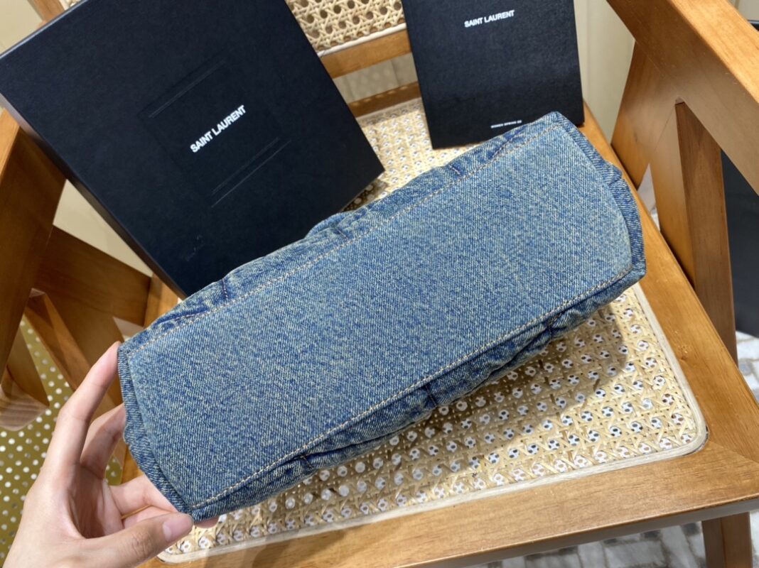 LOULOU PUFFER denim pattern small quilted bag, the ultimate denim washing process, feels soft and comfortable, as if embracing a cloud; the classic Y logo, chain and buttonhole hardware are all made of bronze gold hardware, and the opening of the bag is folded. The magnetic four-button closure is used, and the airtightness and safety are first-class; there is a zippered inner pocket in the bag to store mobile phones and valuables. In addition, there is no extra inner pocket design, so you can use it as you like.Size: 29x17x11cmModel: 577476 Denim