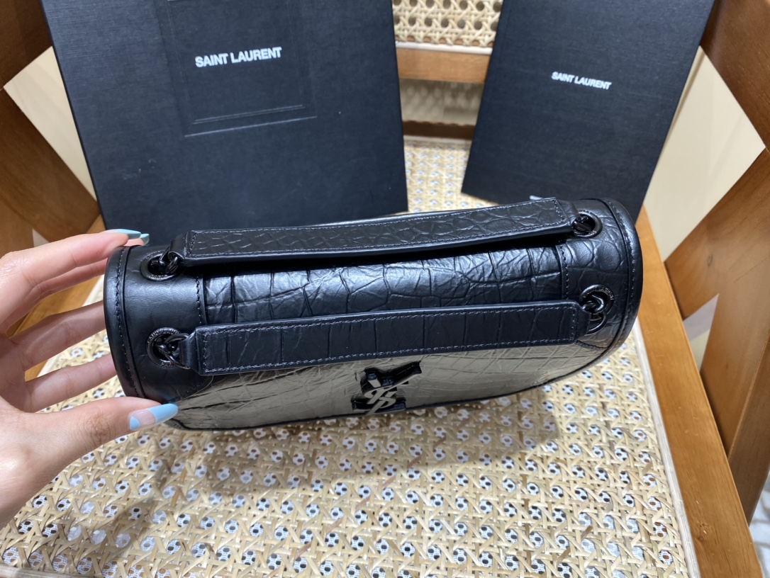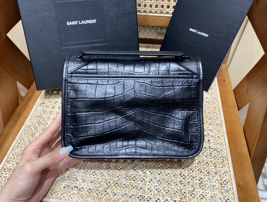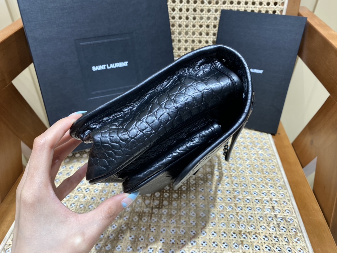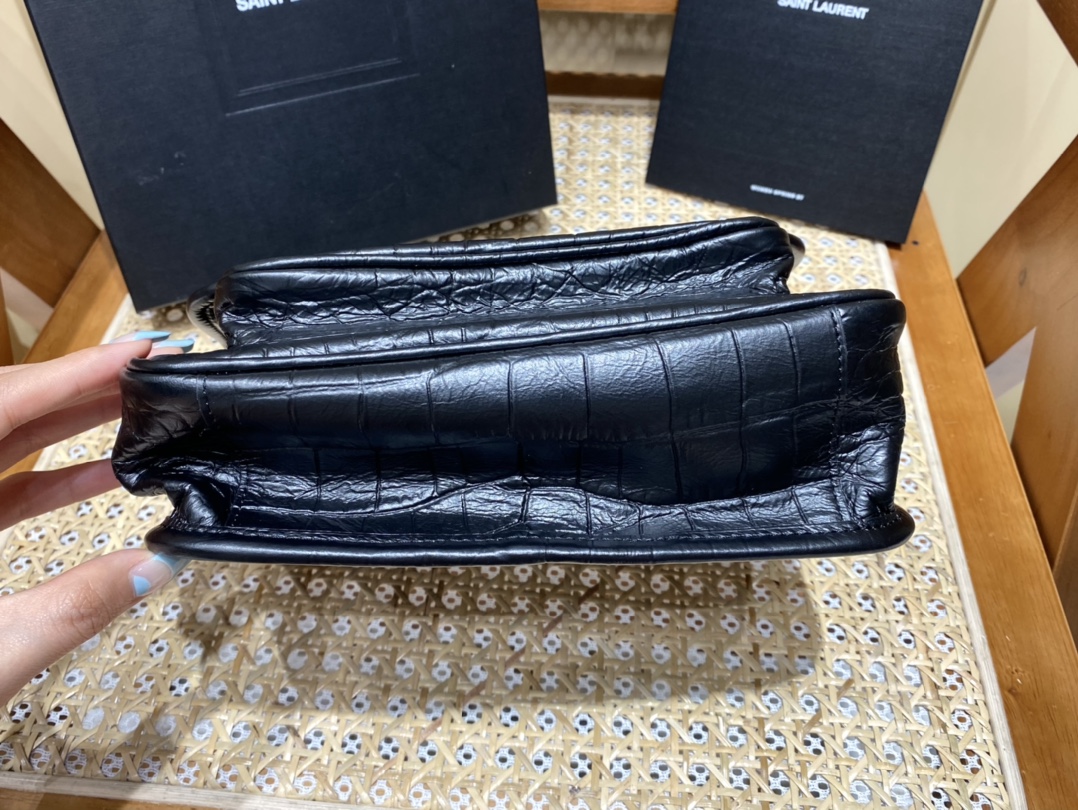 Niki Baby 22 Medium light crocodile pattern with black hardware, very cool. 100% calfskin embossed crocodile pattern, three-dimensional medium light crocodile pattern feels soft and comfortable, hardware is wrapped in crocodile pattern leather, Niki’s iconic logo, grosgrain lining, magnetic snap button, multiple compartments, super practical. The medium light crocodile texture is wear-resistant and not easy to scratch, and it is super easy to take care of. Model: 533037 New Matte E Original Leather Size: 21x16x7.5cm