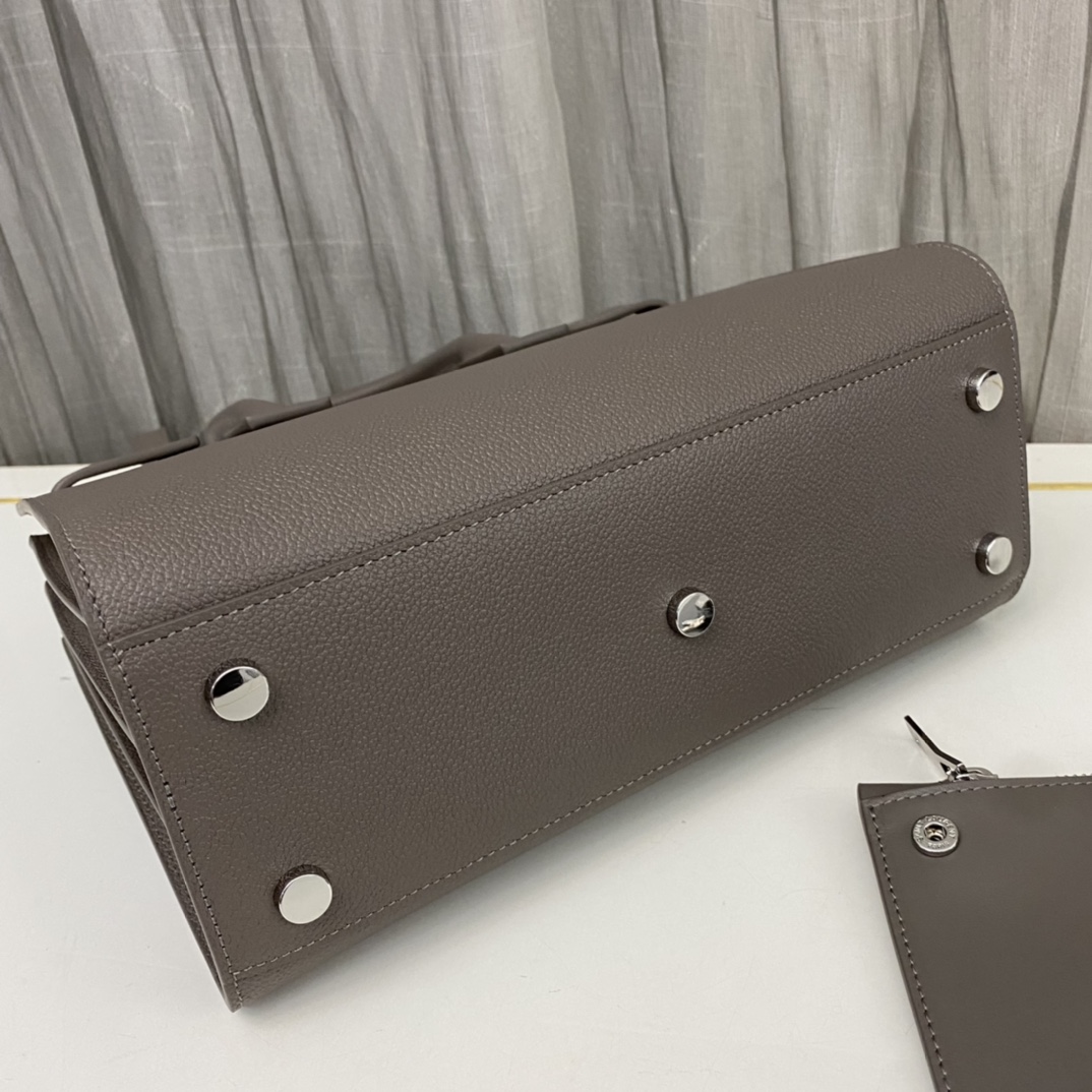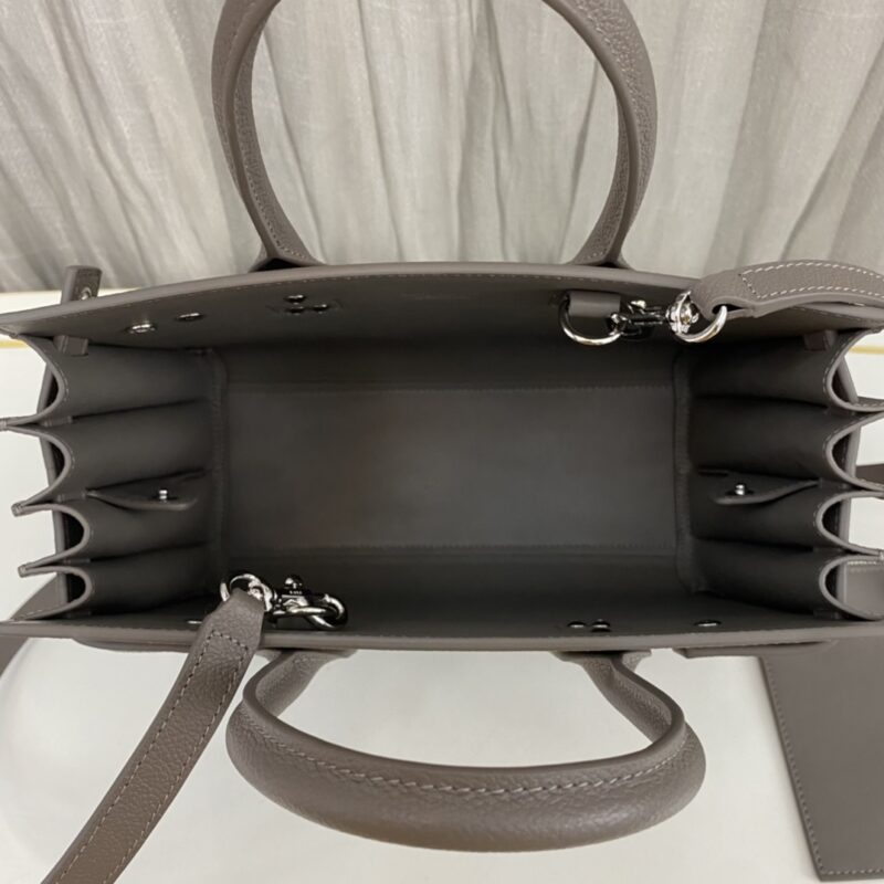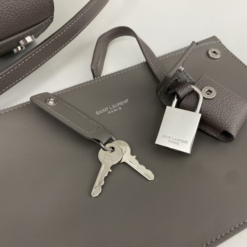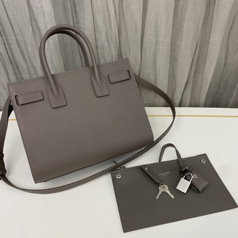 YSL Classic Le Sac de Jour Tote Bag Classic SAINT LAURENT bag with leather tubular handle and accordion side. Features snap closure, adjustable and detachable leather crossbody strap and detachable leather case-covered padlock. It’s really suitable for working and commuting as a briefcase! Low-key and very textured. Size: 26*21*12.5