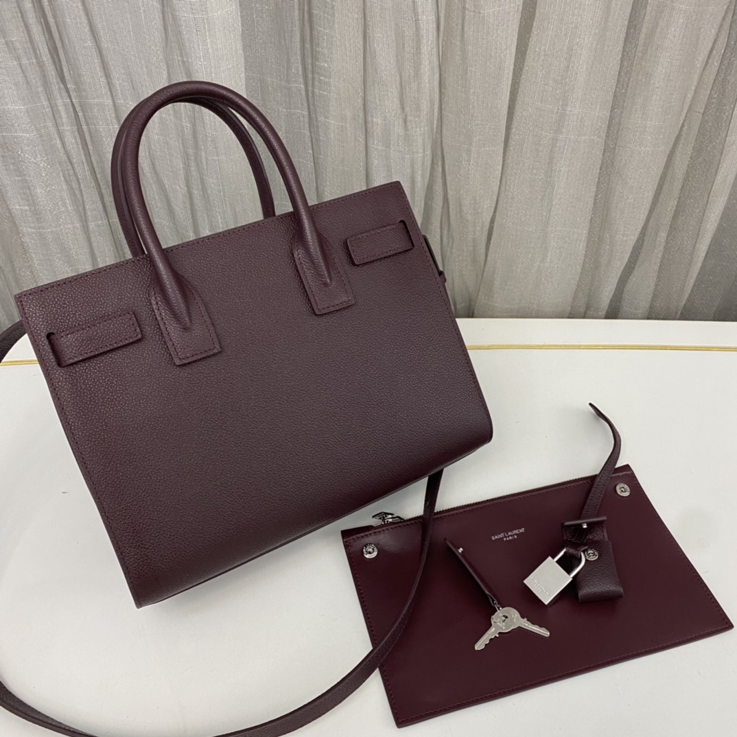 YSL Classic Le Sac de Jour Tote Bag Classic SAINT LAURENT bag with leather tubular handle and accordion side. Features snap closure, adjustable and detachable leather crossbody strap and detachable leather case-covered padlock. It’s really suitable for working and commuting as a briefcase. Low-key and very textured. Size: 26*21*12.5