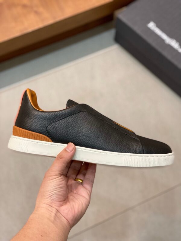 Triple Stitch is a sophisticated casual shoe with a signature triple cross elastic detail, inspired by the triple hand-stitched shape, highlighting Zegna’s long heritage. This leather-lined deerskin sneaker is decorated with llama-colored decorative details. It has a slip-on shoe shape and a lightweight texture. It is equipped with a flexible rubber outsole, which is easy to put on and take off and extraordinary comfort.