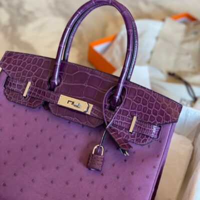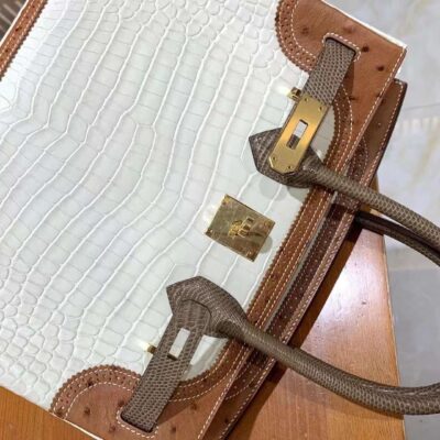 Birkin 30cm inverted v-crocodile-vanilla/hemp rope gray/golden brown Three pieces of lace leather, imported first-class matte crocodile/South African lizard/kk ostrich, original